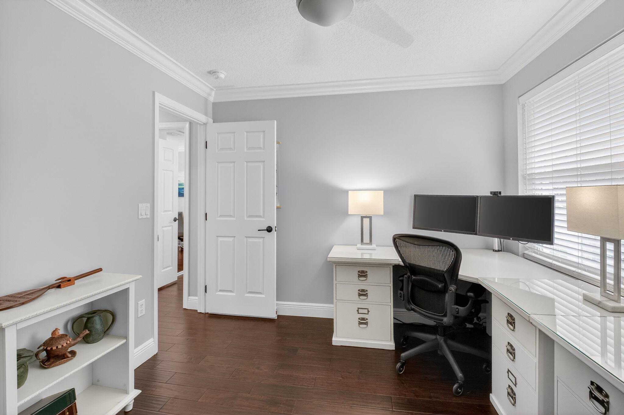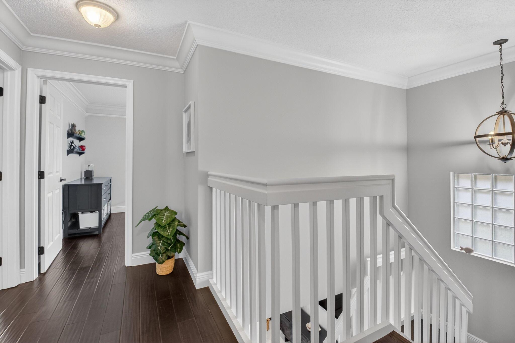 Pride of ownership scores a 10 in this exceptionally maintained, beautifully upgraded, stylish, single-owner home! 2022 ROOF & gutters, IMPACT glass/doors, a designer 2020 kitchen with quartz counters & marble backsplash. Renovated half bath & 2nd bath. Engineered wood floors on the stairs & 2nd floor. Additional upgrades include a hybrid smart water heater, UV & air-purifying A/C, generator hookup, and an EV charger hookup. The large, private, fenced-in corner lot is an outdoor sanctuary surrounded by tropical plants including a banana tree, pineapple plants, a gorgeous Royal Poinciana tree & more. Enjoy hours of fun & entertaining with your built-in grill/outdoor kitchen and swing! Plenty of room for a pool! Located in an A-rated school district. Family-friendly community!