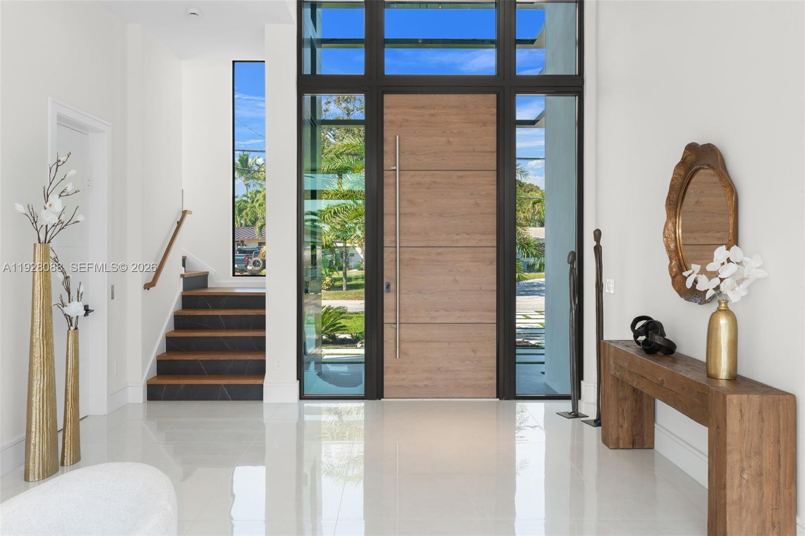 Introducing a spectacular 2026 modern waterfront estate in the heart of Lighthouse Point, offering exceptional design, premium finishes, and true resort-style living. This 5-bedroom, 6-bath residence spans 5,055 sq ft (5,961 total) and sits on 90 feet of deepwater frontage with direct ocean access—ideal for luxury coastal living. Step inside to soaring 12-foot ceilings, open living areas, and a sleek contemporary layout filled with natural light. Impact glass pocket doors disappear, creating a dramatic indoor–outdoor flow to the waterfront terrace. The chef’s kitchen is a showpiece, featuring Sub-Zero and Wolf appliances, custom cabinetry, and an exquisite sculptural island that anchors the home’s sophisticated entertaining spaces. A curated blend of imported Italian and Spanish designer finishes add modern grandeur throughout. The primary suite is a private sanctuary with water views, a spa-inspired bath, and boutique-style closets. Guest suites are spacious and elegantly appointed. A private elevator, smart-home integration, and impeccable 2026 construction ensure seamless, elevated living. Outside, enjoy a resort-style pool, covered terraces, and a private dock ready for a large vessel. This brand-new residence blends a rare fusion of bold architecture, cutting-edge design, luxury detail, with the best of South Florida waterfront living—an exceptional opportunity in one of Lighthouse Point’s most coveted neighbourhoods.
