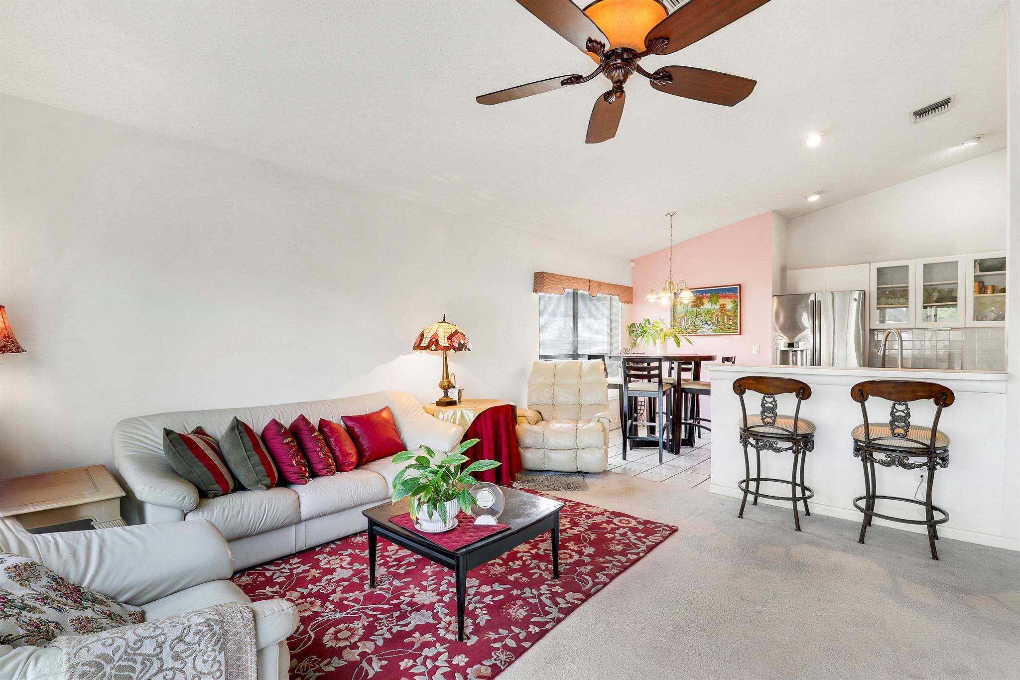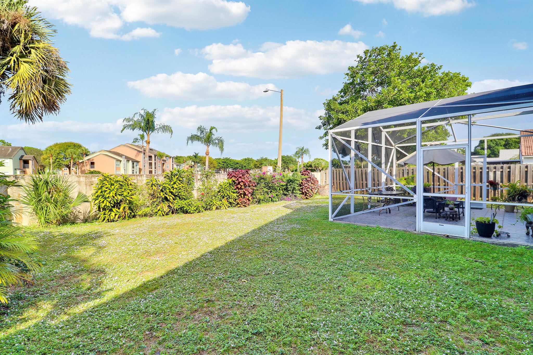 LOVELY 3BR, 2BA Single-Family Home with a spacious 2-car garage. NEW ROOF 2025 (Concrete Tile) W/TRANSFERABLE 7 Yr. WARRANTY! As you walk in you are greeted with a bright & inviting Interior, featuring a large palladian window that fills the living room with abundant natural light. Separate Family Rm off the Kitchen. SCREENED IN PATIO! Perfect for relaxing outdoors, grilling, or entertaining. Garage has EV Charging!! Quiet Neighborhood with only 76 homes, offering a peaceful, community feel. Low HOA Fees while still enjoying great amenities. Community features: Pool, Billiards, Fitness Center, Community Room, Library & more. Prime Location close to shopping, dining, I-95, and PBI Airport for ultimate convenience. Experience this EXCEPTIONAL HOME In Person ~ Schedule your Tour TODAY!