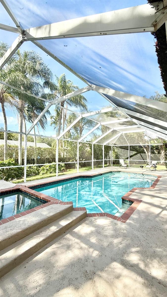 Beautiful 3 bedroom, 2 bath home offering the perfect blend of comfort, style, and functionality. Open floor plan that seamlessly connects the living, dining, and kitchen areas, creating an airy and welcoming atmosphere. Large impact windows and doors allow natural light to pour in throughout the day. Update kitchen with wood cabinets, granite counter tops, and stainless steel appliances. Large covered terrace with screened-in pool an spa designed for year-round enjoyment. This outdoor oasis truly extends your living space. Expansive yard provides endless possibilities offering plenty of room for gardening, play areas, pets, or future outdoor enhancements.