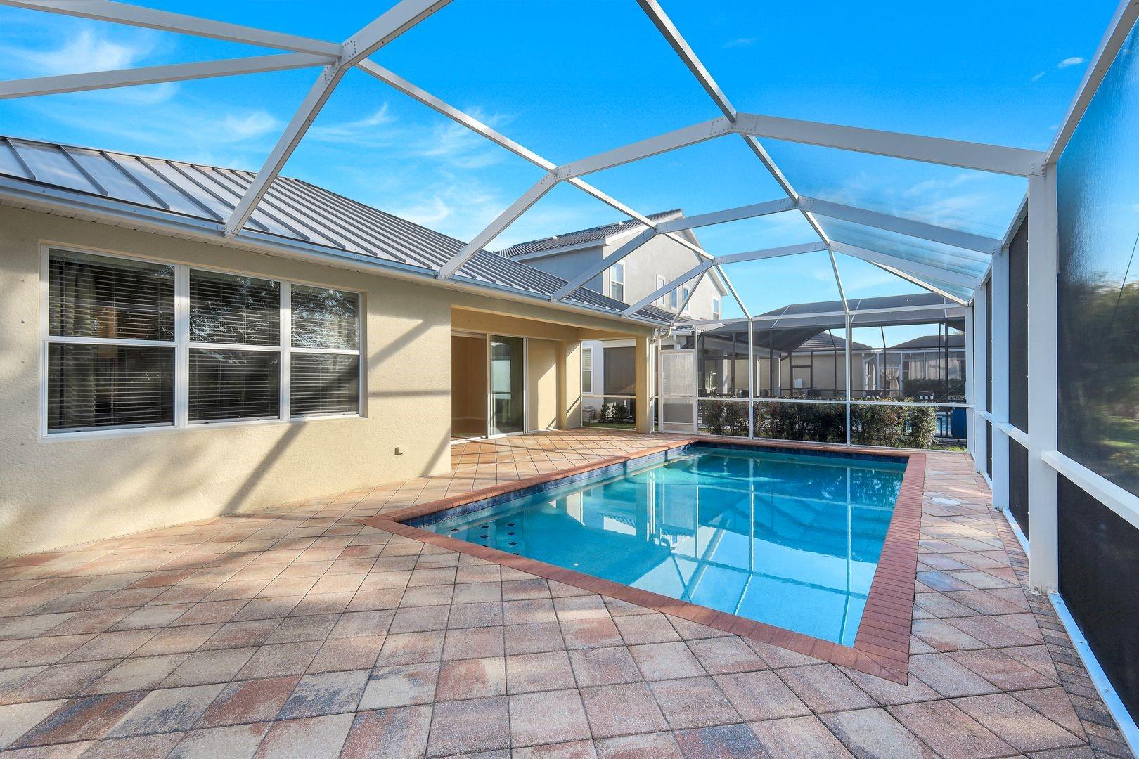 Beautifully maintained POOL home in the gated Sandoval community with NEW ROOF (2023) and a bright, open layout designed for easy Florida living. Enjoy a spacious kitchen with granite counters, stainless appliances (2021), breakfast bar, and walk-in pantry. The owner’s suite offers a tray ceiling, walk-in closet, dual sinks, soaking tub, and tiled shower. Relax on the screened lanai with a sparkling pool and private hedge-lined yard. Recent updates include A/C (2022), water heater (2022), pool pump (2022), and newer washer/dryer (2021). Sandoval amenities include a resort-style pool, clubhouse, fitness center, walking paths, dog parks, pickleball, tennis, and beautifully maintained grounds throughout.