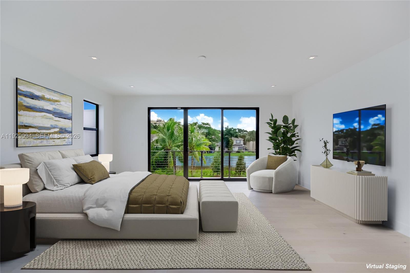 Stunning brand new two-story lagoon front house located in the exclusive community of Botaniko. It features 5 bedrooms, 5 bathrooms, a powder room, an attached 3-car garage, a huge backyard with a private pool with jacuzzi, and a summer kitchen. Be the first to live in this modern masterpiece designed by world renowned architect Mateu. Built in 2025, the house was just delivered by developer in December and boasts 3,810 Sq Ft of living space over a huge lot spanning 15,933 Sq Ft. The designer kitchen features top-of-the-line appliances (Sub-zero, Wolf, Asko). Enjoy luxurious high ceilings and expansive windows, which provide abundant natural light and a seamless indoor-outdoor flow. The beautiful back yard offers lush landscaping, an oversized pool, and a beautiful lagoon view. The residence has extra upgrades such as 3-zone integrated sound system and security cameras. Botaniko Weston is located right in front of Bonaventure golf club, near top-rated schools, restaurants and shops.