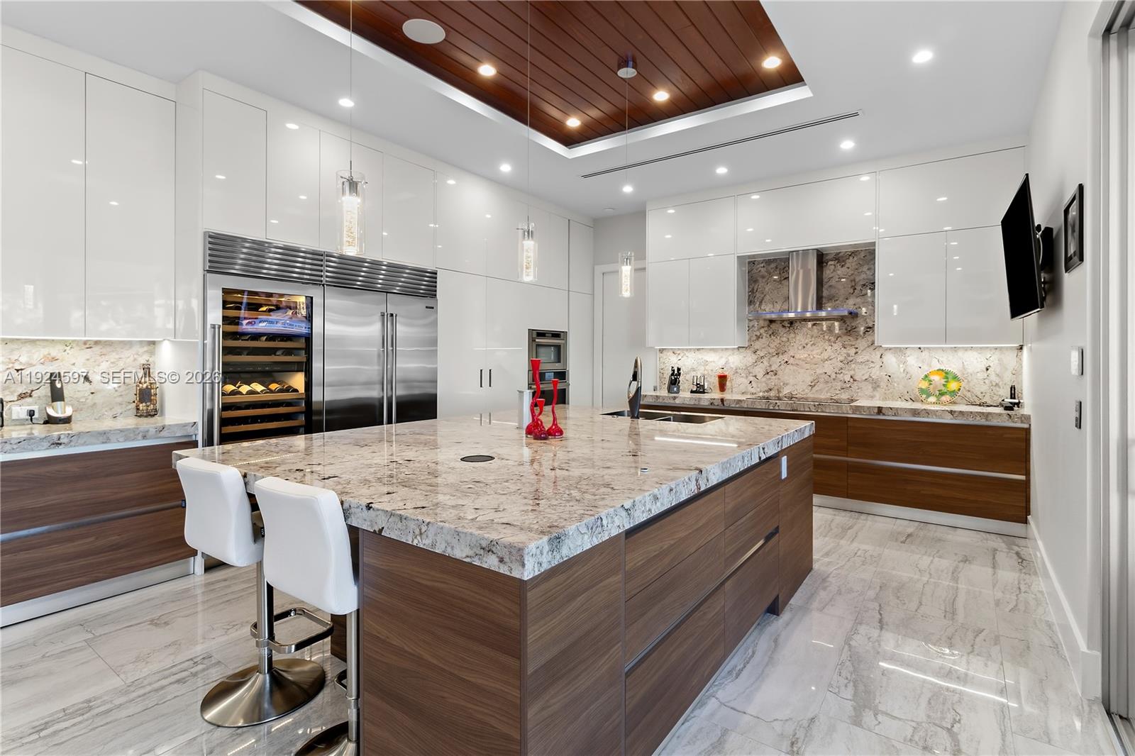 A striking modern waterfront estate completed in 2019 by Barron Construction and architect Kevin Akey. Expertly elevated on 54 pilings, this residence seamlessly blends cutting-edge technology with refined design, featuring Control4 smart-home automation, Sonos audio, a whole-house generator, and exceptional custom finishes throughout. Dramatic 23-foot ceilings, a sculptural floating staircase, and a sleek glass walkway create a breathtaking architectural statement. The chef’s kitchen is outfitted with Sub-Zero and JennAir appliances, while the first-floor primary suite delivers a true spa-like retreat. Outdoor living is equally impressive, offering an 80-foot Trex dock with direct ocean access, a resort-style heated pool and spa, manicured turf grounds, and a gated driveway accommodating up to 11 vehicles.