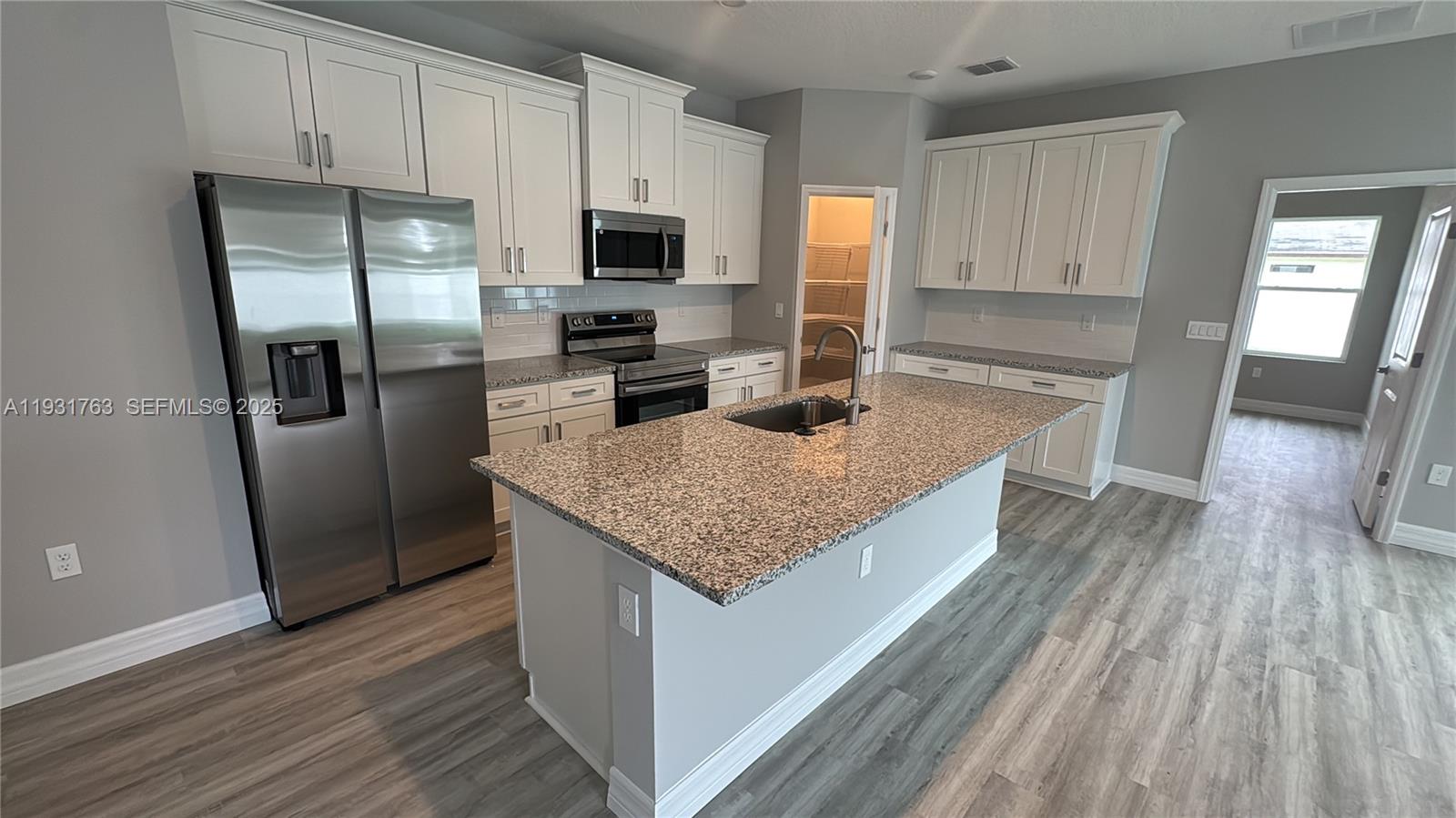 New 6 ft privacy fence! This exquisite 1,990-square-foot residence sits on a 0.22-acre lot. The residence showcases 4 bedrooms, 3 bathrooms, and a 2-car garage. This residence sets a new standard for living. Step inside to experience premium finishes throughout. The heart of this home features a stunning chef's kitchen equipped with Samsung stainless steel appliances and a spacious center island, complemented by Calacatta Quartz countertops and subway tile backsplashes. Beautiful Reef Gold vinyl plank flooring flows seamlessly. Two-tone kitchen cabinets, dramatic 9'4" ceilings create an airy atmosphere, enhanced by Maxim lighting fixtures and Moen Chateau Chrome accents. The primary bathroom features a frameless glass shower enclosure. The exterior impresses with Onyx Stone siding. Built for efficiency and peace of mind, this home includes an energy-efficient Goodman HVAC system, double-pane vinyl windows and doors, and a comprehensive 2-7-year builder warranty. Photos used are of the same model of this home.