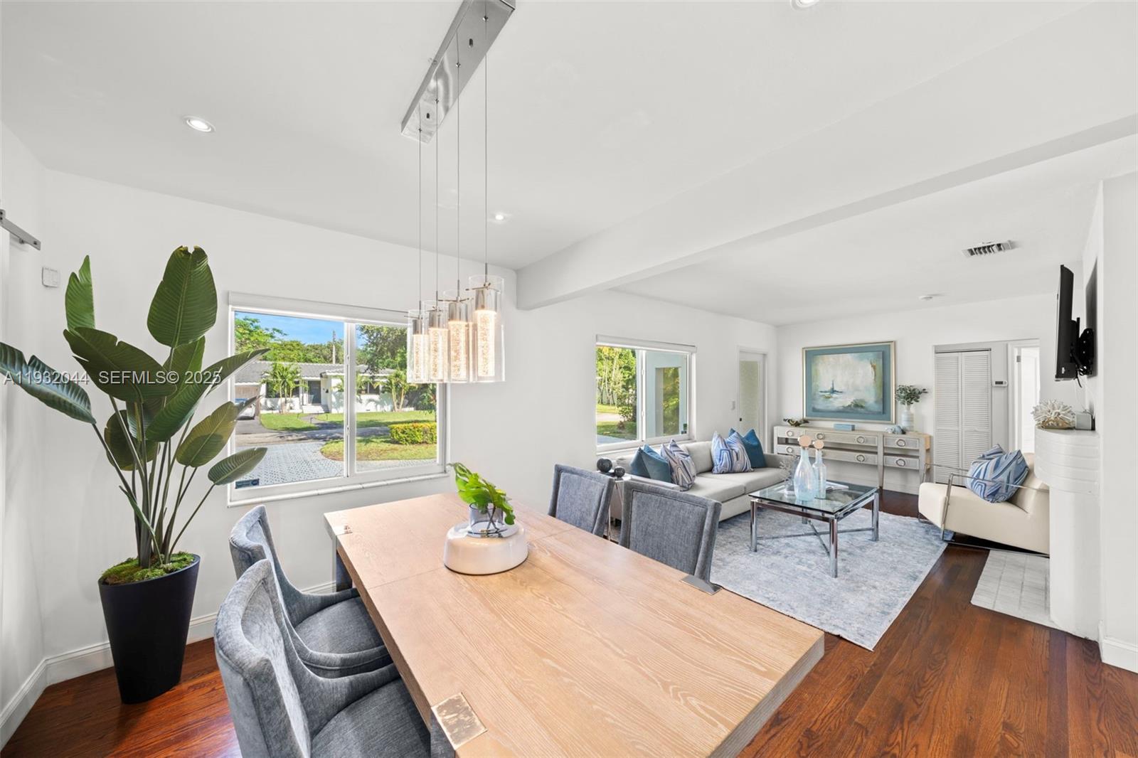 Welcome to the Sunshine Abode, a beautifully updated 3bd/1ba located on an adorable Miami Shores cul-de-sac. Brimming with curb appeal, this lovely home flows east to west with two bedrooms and bathroom on the east and converted, step-down 3rd bedroom on the west. The 3rd bedroom could serve as an oversized primary suite, TV room, office or gym. Plenty of room to add a second bath. The lush and ultra private backyard features a fence, large patio, newer shed and healthy & abundant avocado tree. Magical outdoor lighting creates an enchanting evening atmosphere. Room for a pool. Beautifully remodeled bath, kitchen and impact windows throughout. Ample parking in the circular front driveway. Easy to show!