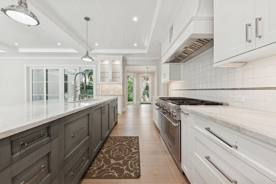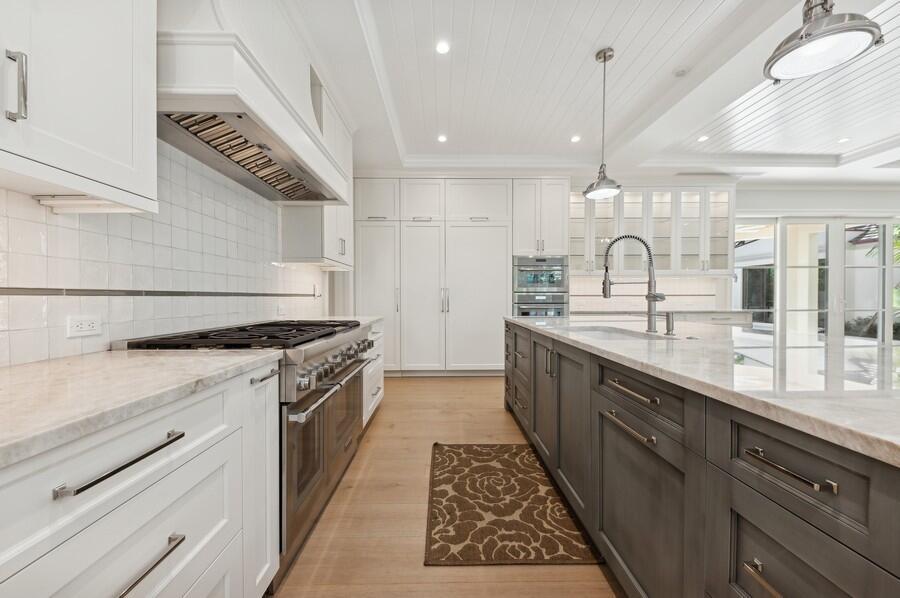 Superb rare location, master suite on main floor, three car garage, high end finishing and upgrades- a stunning home with rich landscaping and unique floor plan which makes the most of this oversized cul-de-sac lot on a beautiful in-town street- minutes to everything. Custom built with plank oak and marble flooring, high end appliances and finishes on a quiet location adjacent to waterfront mansions-access to garage via private alleyway. Bring your most demanding prospects.