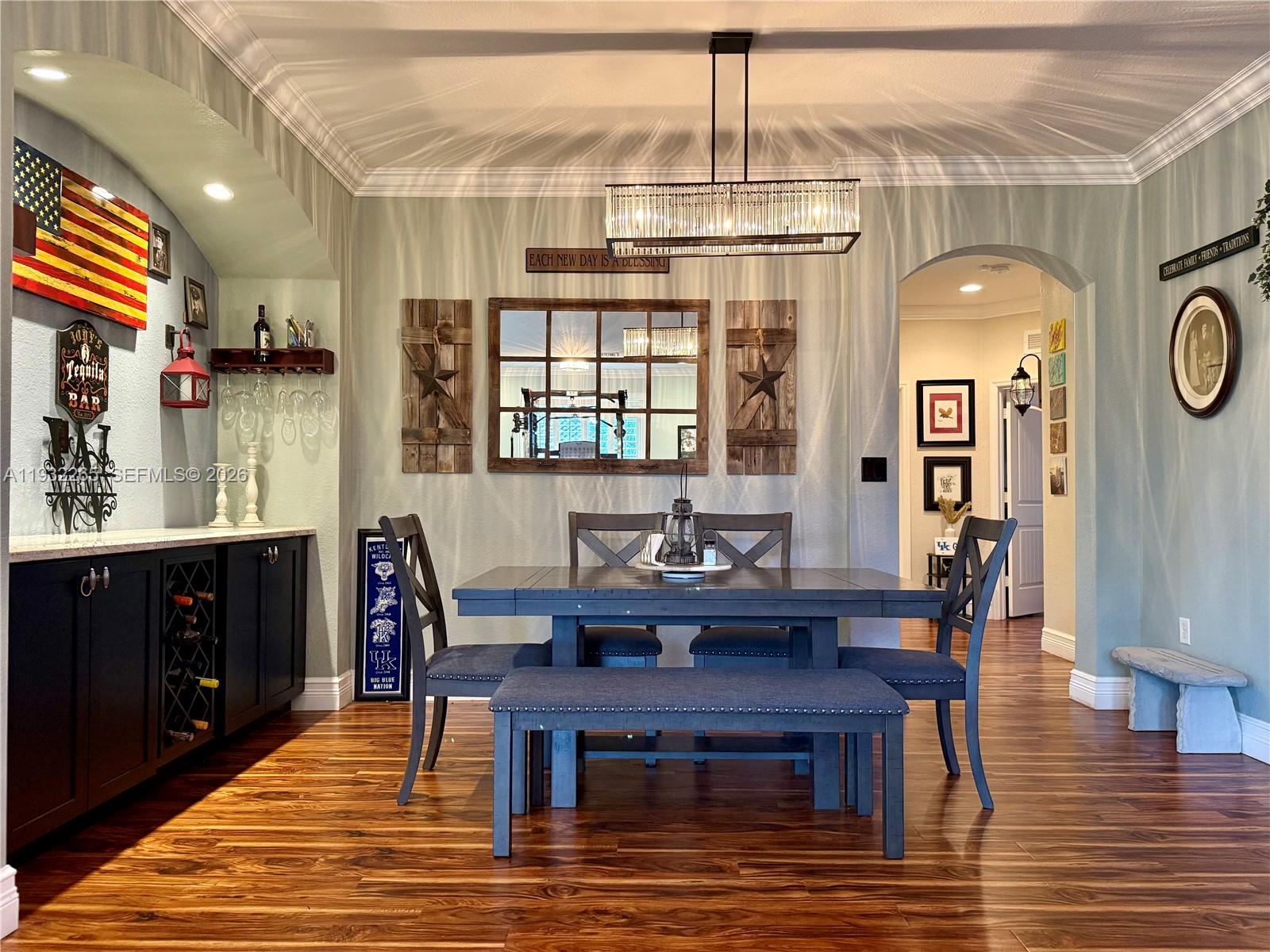 Exquisite Florida living awaits in this stunning 4-bedroom, 3-bath residence, on an oversized lot within a serene, private cul-de-sac. Step outside to your own private oasis, where the fully screened outdoor area is designed for year-round enjoyment. The centerpiece is a 38’ x 15’ saltwater pool with a modern heat pump, a 8’ x 8’ Jacuzzi and a swim-up bar, ideal for entertaining family and guests. The space is designed to take full advantage of Florida’s enviable climate, offering seamless indoor-outdoor living. Inside, the home showcases a highly desirable split floor plan, allowing for privacy and functional living. The interior has been thoughtfully upgraded with crown molding, engineered laminate flooring, and plantation shutters, creating a sense of refinement and timeless elegance. The gourmet kitchen is equipped with new stainless-steel appliances, a stylish tile backsplash, and abundant cabinet space. Beyond the pool and interior spaces, the property offers ample room for boat and RV parking, making it ideal for boating enthusiasts or those with active outdoor lifestyles. A professional-grade security camera system and impact windows and doors adds extra layers of peace of mind. Set in a sought-after location, this home provides the perfect balance between privacy and convenience. Residents enjoy easy access to shopping, dining, and entertainment. Experience the ultimate in Florida living with privacy, luxury, and functionality all in one exceptional property.