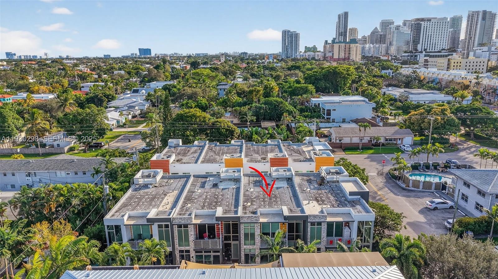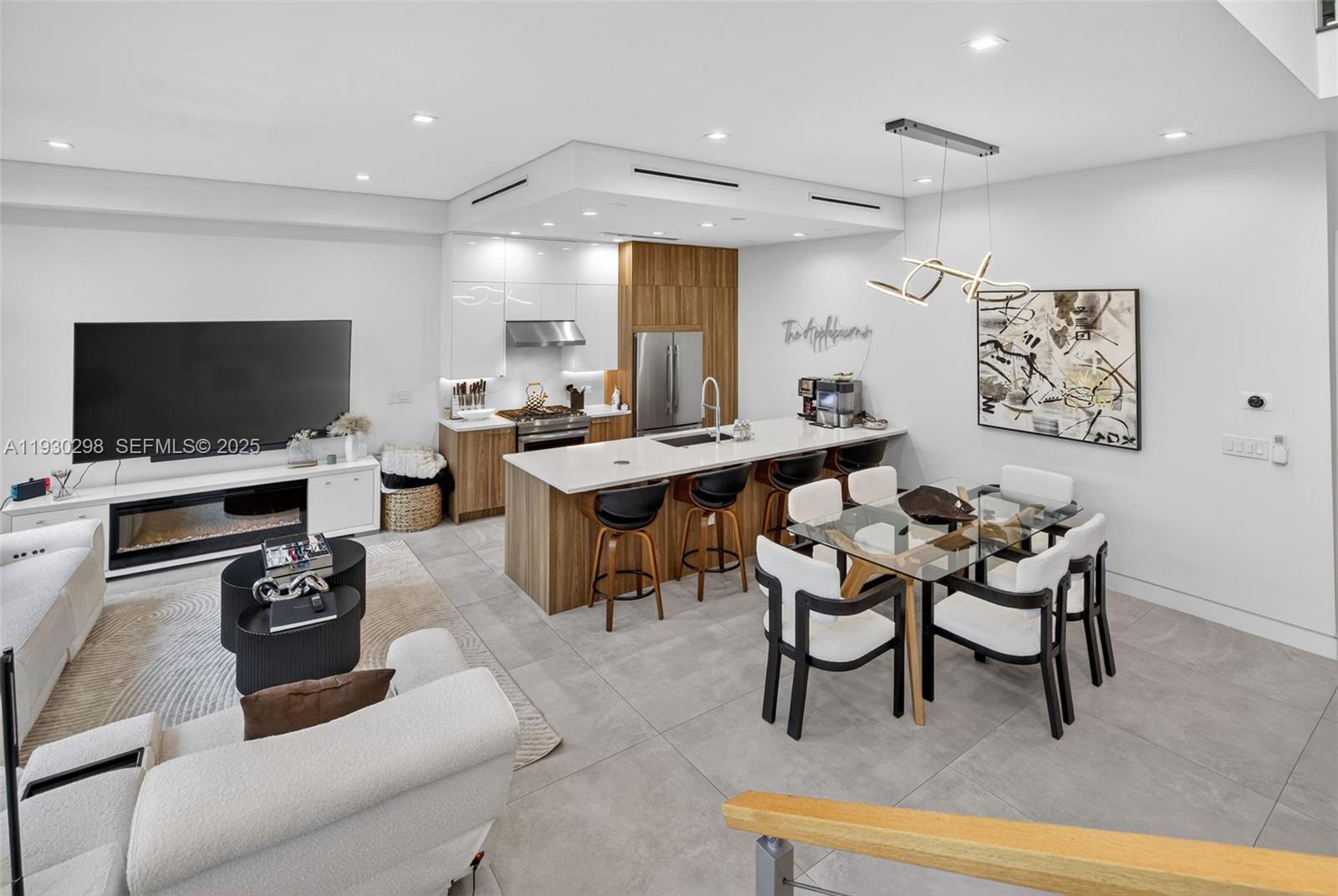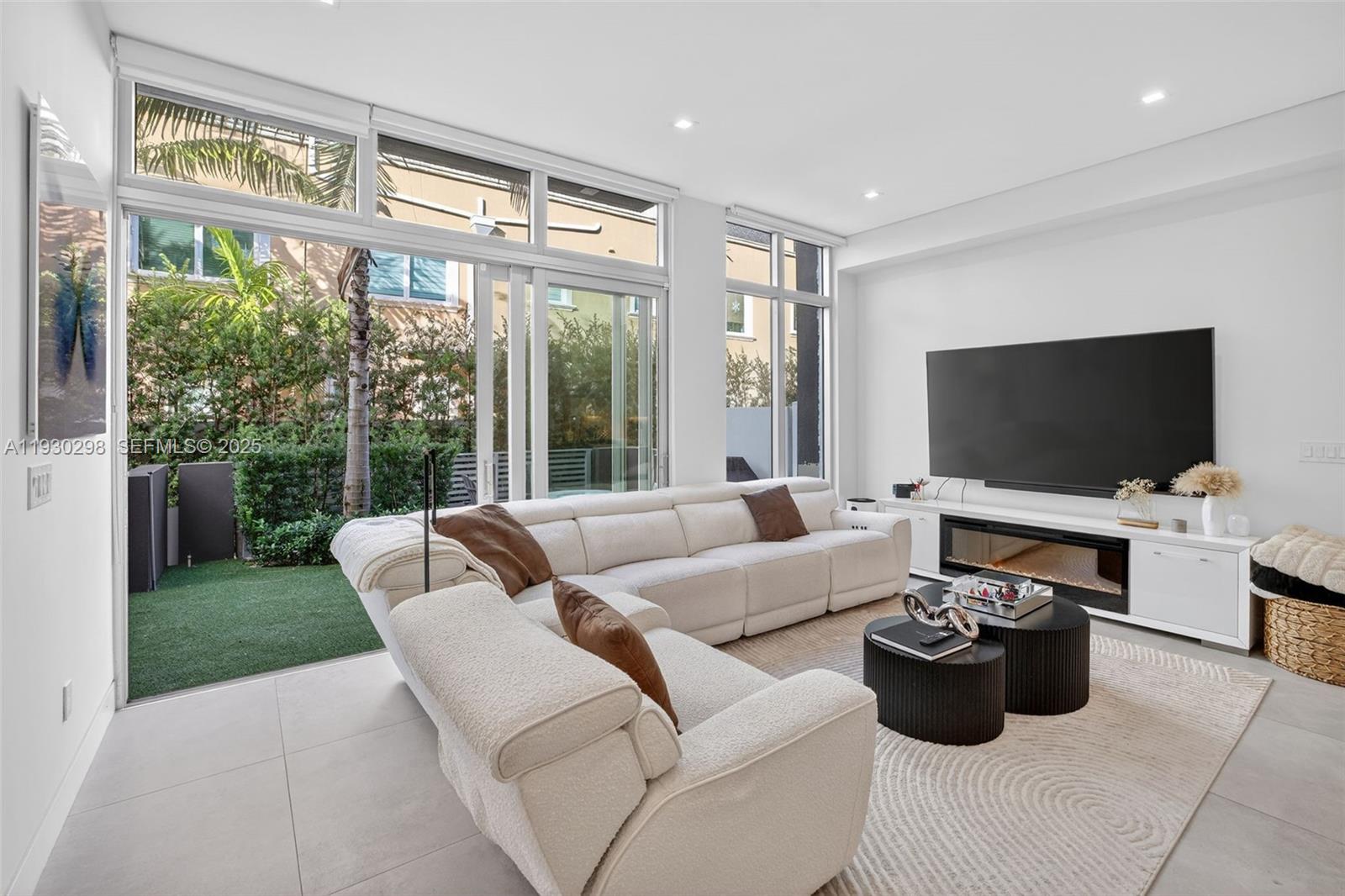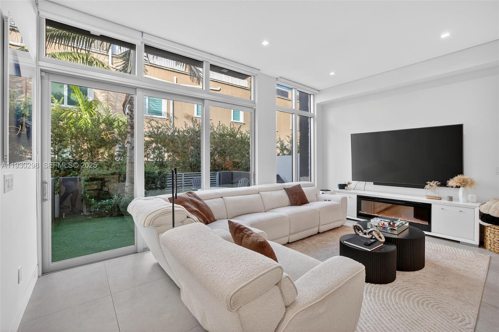 Impeccably maintained modern townhome located in a boutique, eight-unit Victoria Park community. Enter through a dramatic glass-front entry spans two stories, creating a bright, airy atmosphere and effortless indoor-outdoor flow. The open-concept layout is enhanced by soaring 10+ foot ceilings and abundant natural light. A statement floating staircase with stainless accents anchors the main living space. The designer kitchen is outfitted with JennAir stainless appliances, gas cooking, Dell Anno Cabinetry and quartz counter seating. The primary suite serves as a private retreat with its own balcony, walk-in closet, dual vanities, and a spacious glass-enclosed shower and tub. A second-floor loft offers flexible use as a media room or office separating the Primary from the additional two bedrooms. Move right in as this unit comes with custom built out closets, motorized shades, smart home features throughout, and a tankless gas water heater for your convenience. Unbeatable walk-to location near Fort Lauderdale’s newest dining, fitness, shopping, and everyday conveniences. Right around the corner from Holiday Park and the Florida Panthers Practice Facility! Sqft. from Developer is believed accurate.