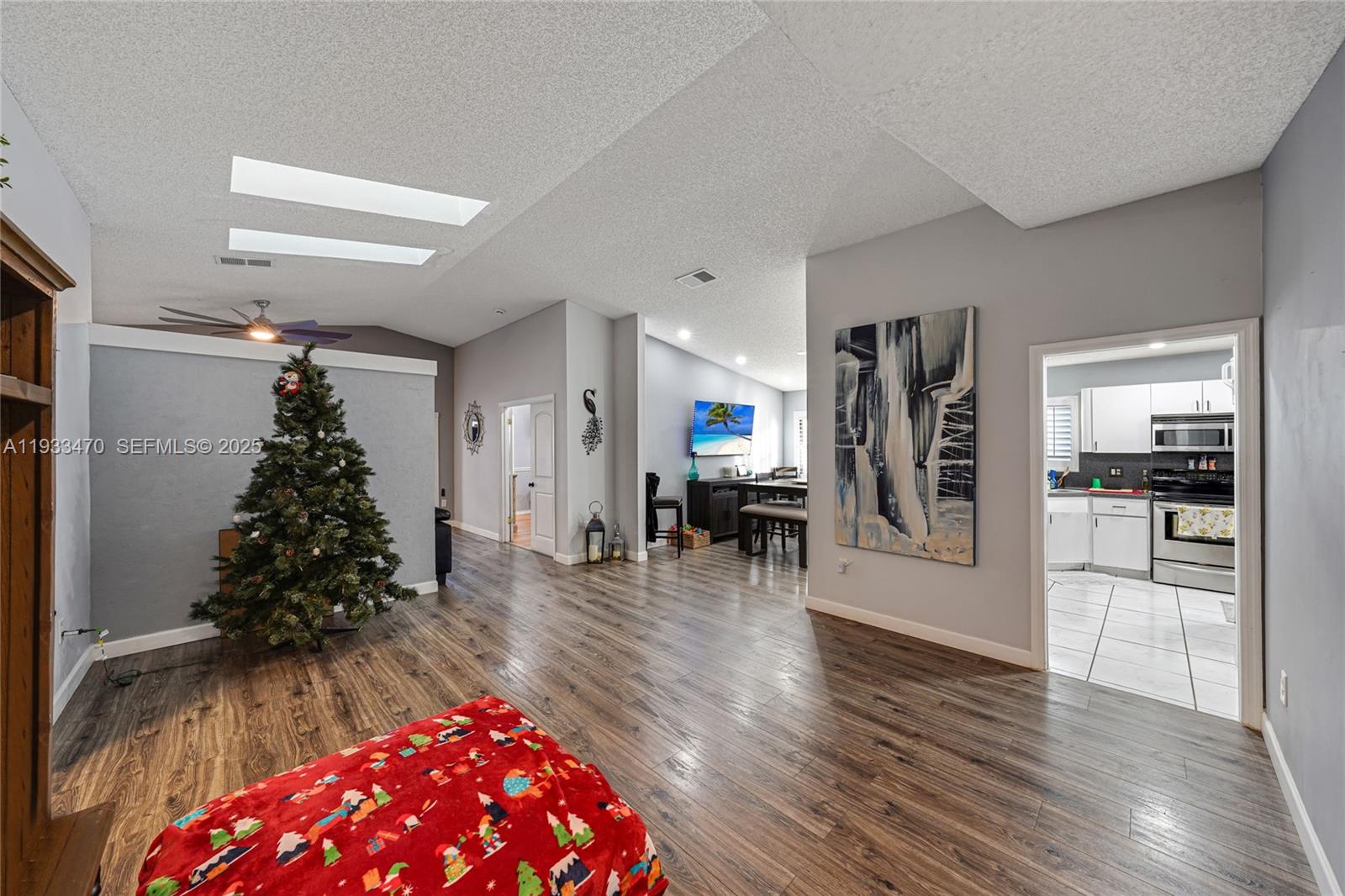 Single-family home featuring 3 bedrooms, 2 bathrooms, and 2,018 sq ft of living space. This well-maintained residence offers a 2-car garage and a newly paved circular driveway. No HOA. Interior highlights include laminate and tile flooring, a bright bay window, skylights, stainless steel appliances, and a washer and dryer. Recent upgrades include a new roof, newly paved driveway, and impact windows and doors. The fenced yard adds privacy and functionality. Located in a sought-after Miami Lakes neighborhood, near Barbara Goleman High School and top-rated schools. Convenient access to I-75 and the Palmetto Expressway, with nearby dining, parks, and everyday conveniences. Well priced to sell.