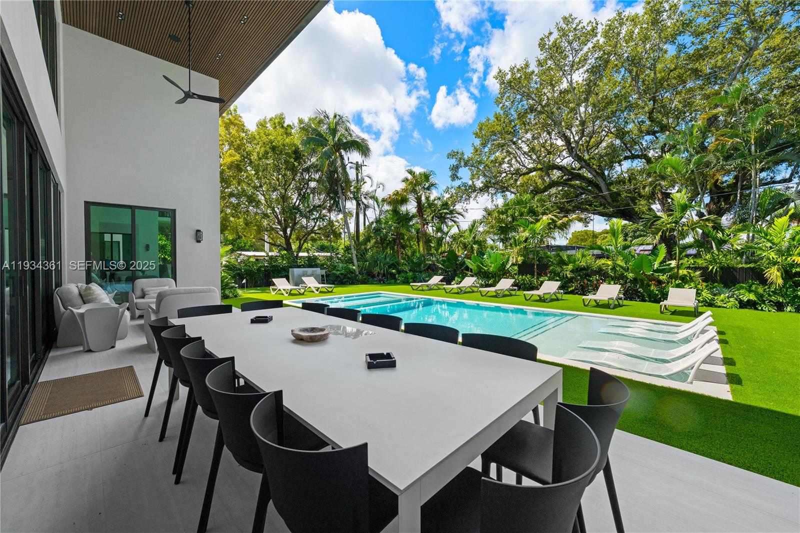 This exceptional modern luxury estate offers approximately 6,200 SF of open-concept living, showcasing striking contemporary architecture, soaring ceilings, and abundant natural light. Designed for both comfort and entertaining, the residence features expansive living and dining areas with seamless indoor-outdoor flow. The home offers 9 spacious bedrooms, each with a private en-suite bathroom, plus 9.5 beautifully finished baths, providing privacy and flexibility for family and guests. High-end finishes and sleek modern design elements are found throughout, creating a refined yet inviting atmosphere. Floor-to-ceiling sliding glass doors open to a resort-style backyard featuring a large swimming pool, spa, turf lounging areas, and expansive terrace spaces ideal for dining and entertaining. Additional amenities include a private putting green and recreational areas, enhancing the home’s lifestyle appeal. Thoughtfully designed and built to impress, this modern sanctuary offers the perfect balance of luxury, functionality, and entertainment ideal for a primary residence, second home, or investment opportunity.