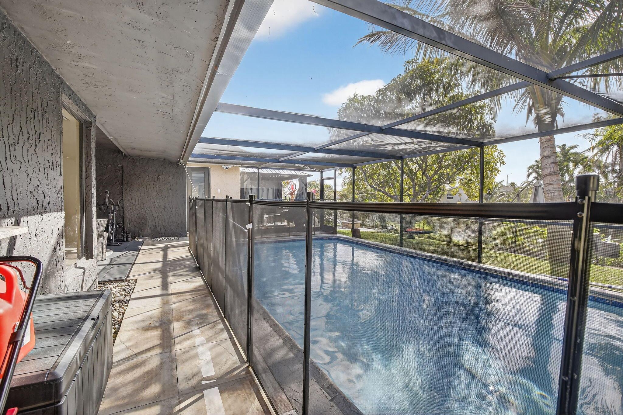 Enjoy easy South Florida living in this canal-front Sunrise Golf Village home with no HOA. This 3-bedroom, 2-bath residence features a bright, open layout with tile flooring throughout and an updated kitchen designed for everyday living and entertaining. The interior flows seamlessly to a screened pool and outdoor living area with a fireplace, creating an ideal setting to relax or host by the water. The garage provides flexible additional living space and can easily be converted back if desired. Full impact protection, solar panels, a new pool pump, whole-home water filtration system, and an electric car charger add efficiency and peace of mind. Mature fruit trees, a circular driveway, and a convenient location near schools, shopping, and major highways complete this inviting property.