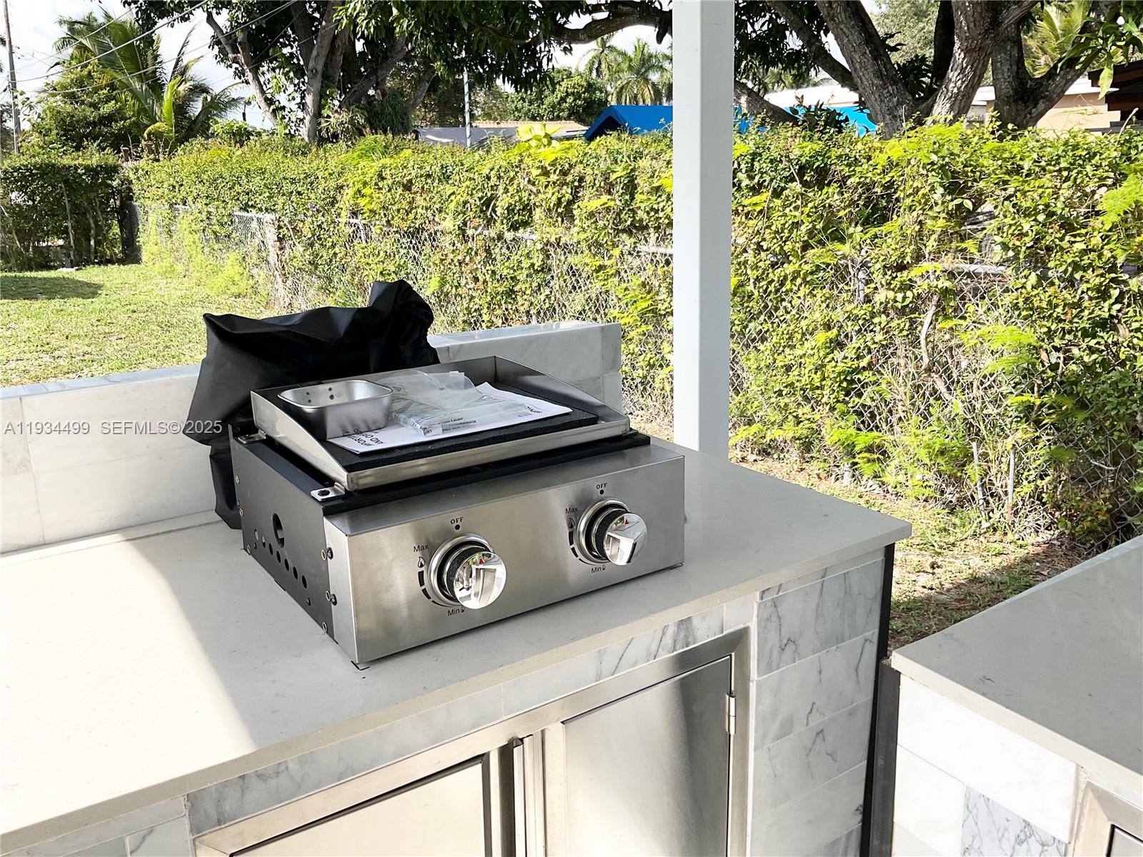 Awesome fully renovated Resort Style home, located in a desirable residential community in Biscayne Gardens (Miami-Dade). Features include dark brown wood floors and magnificent marble tiles in the bathrooms, beautiful kitchen, top of the line stainless steel appliances with Quartz countertops. This 3-bedroom, 2 full-bathroom house features new elegant design and newly resurfaced pool deck with gazebo, including 2 outdoor gas kitchens and sink for great barbecues. New modern indoor barn doors, white wood and matte black details. Tile roof is only 5 years old, new air conditioning unit, impact windows and doors, new garage door, cleared and certified septic tank, washer and dryer and security cameras. Close to Miami Beach, Miami International Airport, Broward, shopping centers, restaurants, supermarkets, schools, and major roads and highways (I-95 and FL Turnpike). With a large 10,725 Sqf lot, this beautiful house is great for family and friends’ enjoyment and entertainment.
