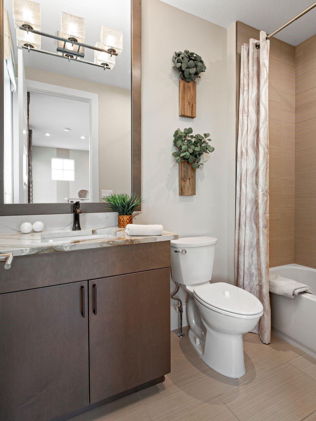 This beautiful Lila with Lakeview Homesite comes with 3-bedroom, 3-bath home offers a spacious family room, versatile flex room, and a covered lanai perfect for outdoor living. The gourmet kitchen features a premium configuration with Cambria Quartz countertops, complemented by upgraded tile flooring throughout the home for a sleek, modern finish. Mosaic residents have access to resort story amenities, including the pool, fitness center and pickleball, all minutes form I-95, dining, and shopping. Photos of a decorated model home are for reference only. Actual home will differ.