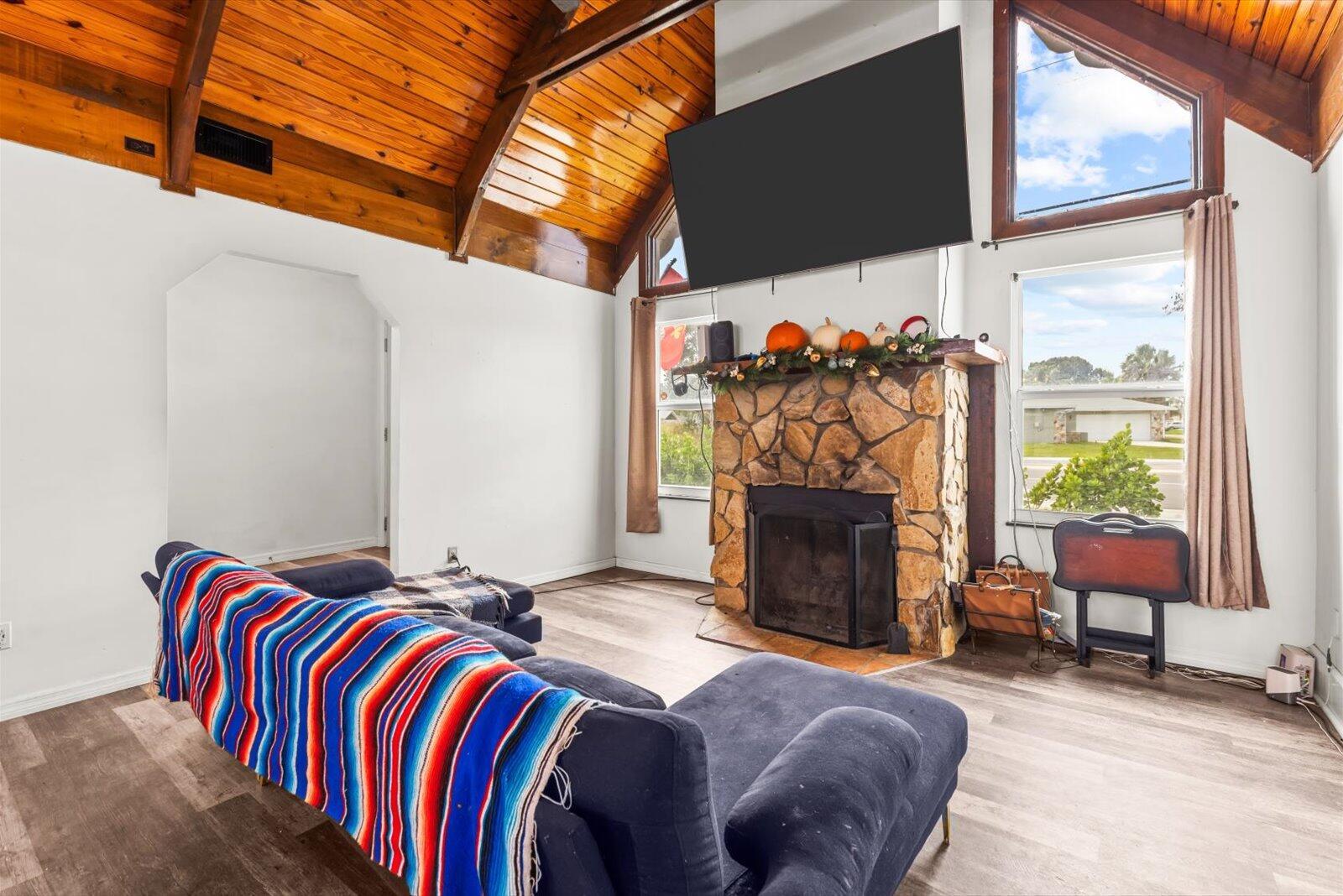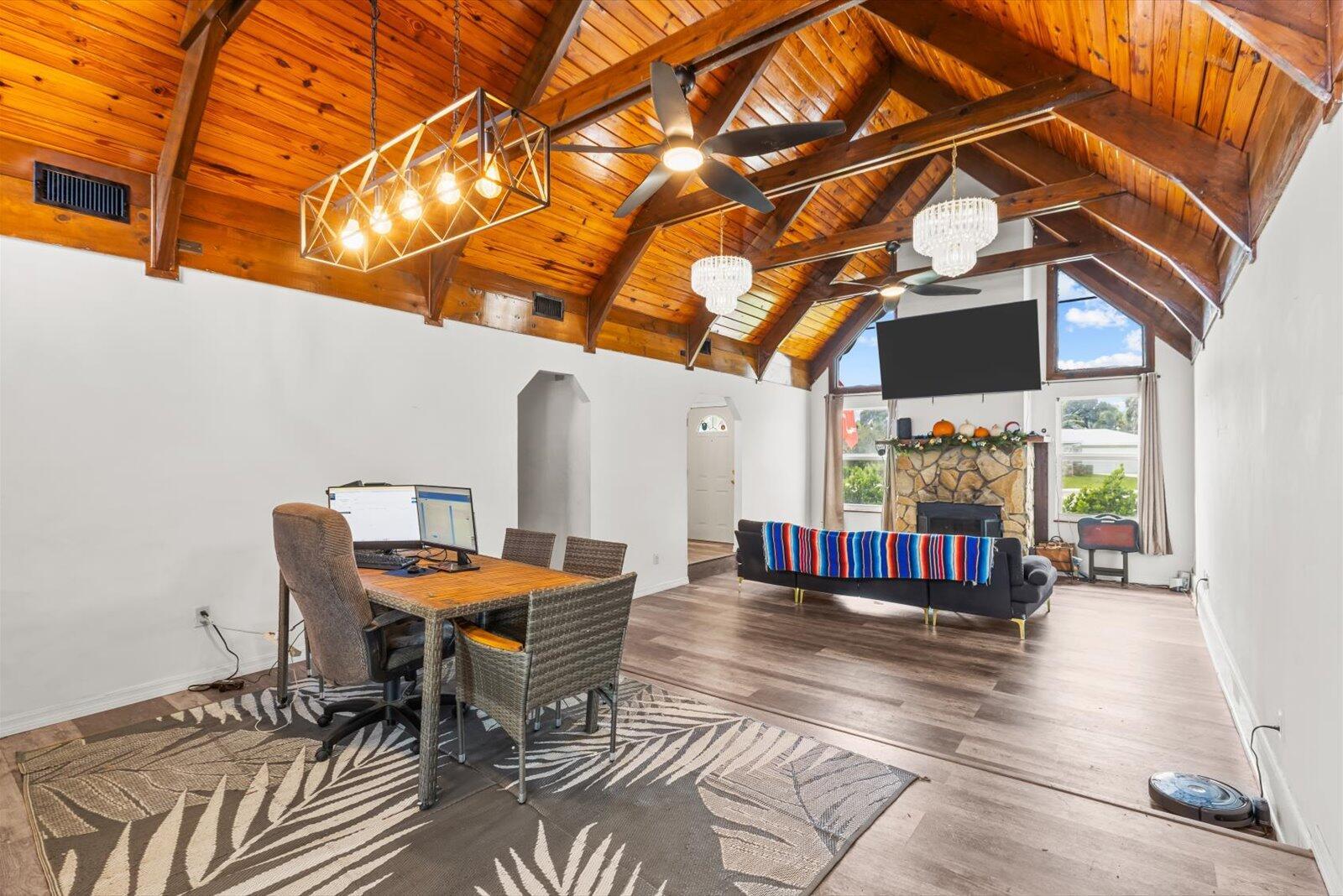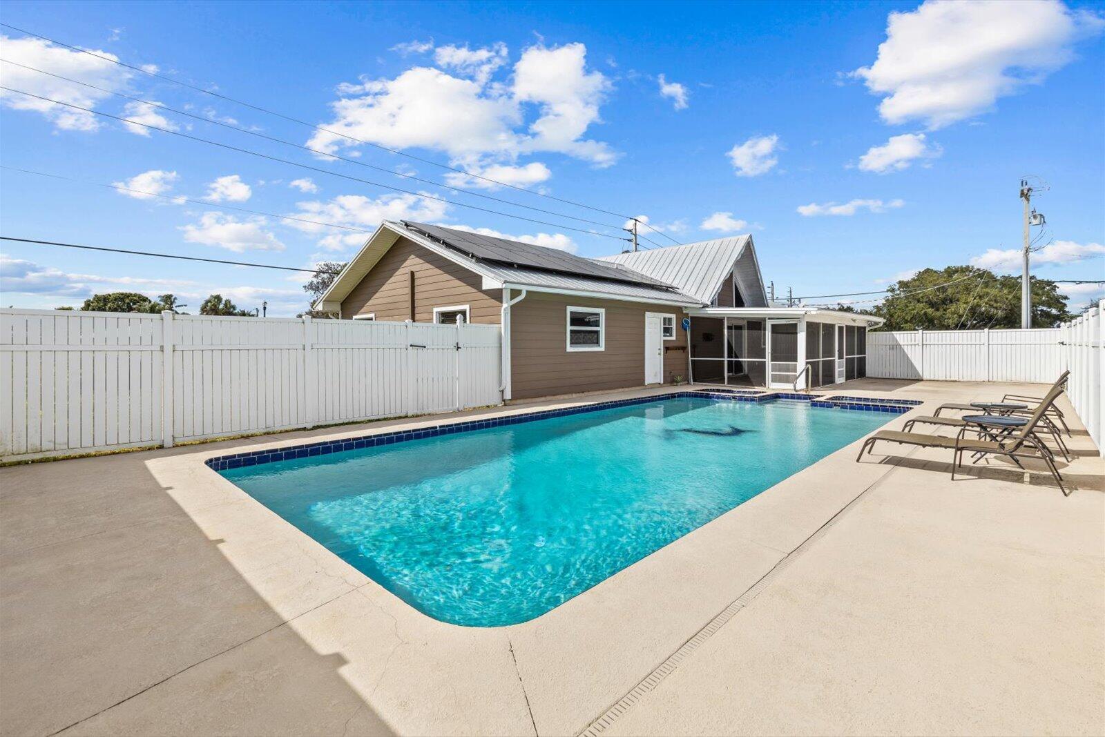This beautiful 4 bedroom 2 bath pool home is ready for its new owner. The main living area features an appealing open concept highlighted by vaulted cedar ceilings. Enjoy relaxing in your heated pool with dual spas. Across the street is the United States Submarine Veterans Park, offering a scenic walking path around the lake and playground. A/C-'23 wtr htr-'23 elc-'22 pool htr-'22 roof-'15