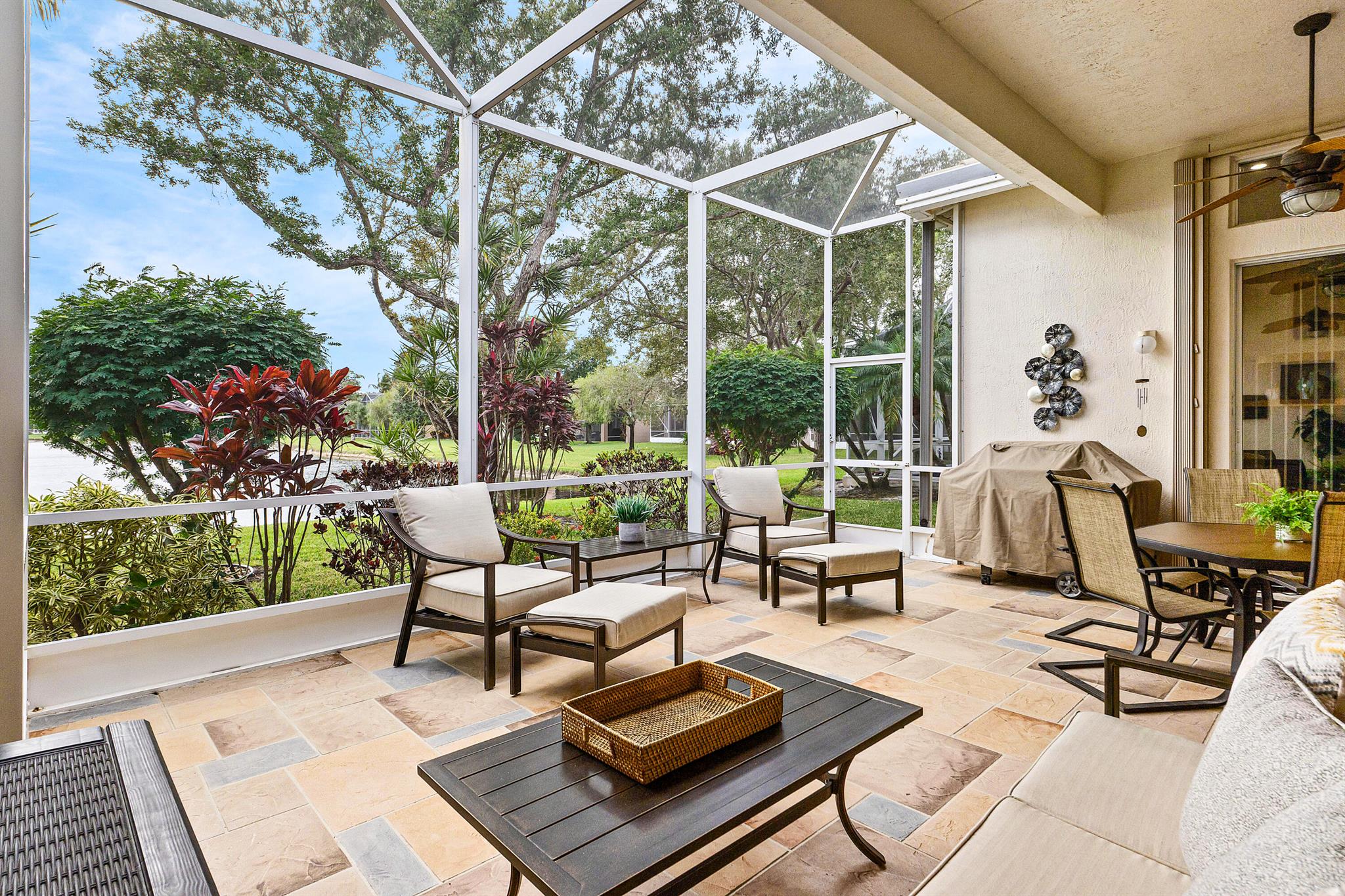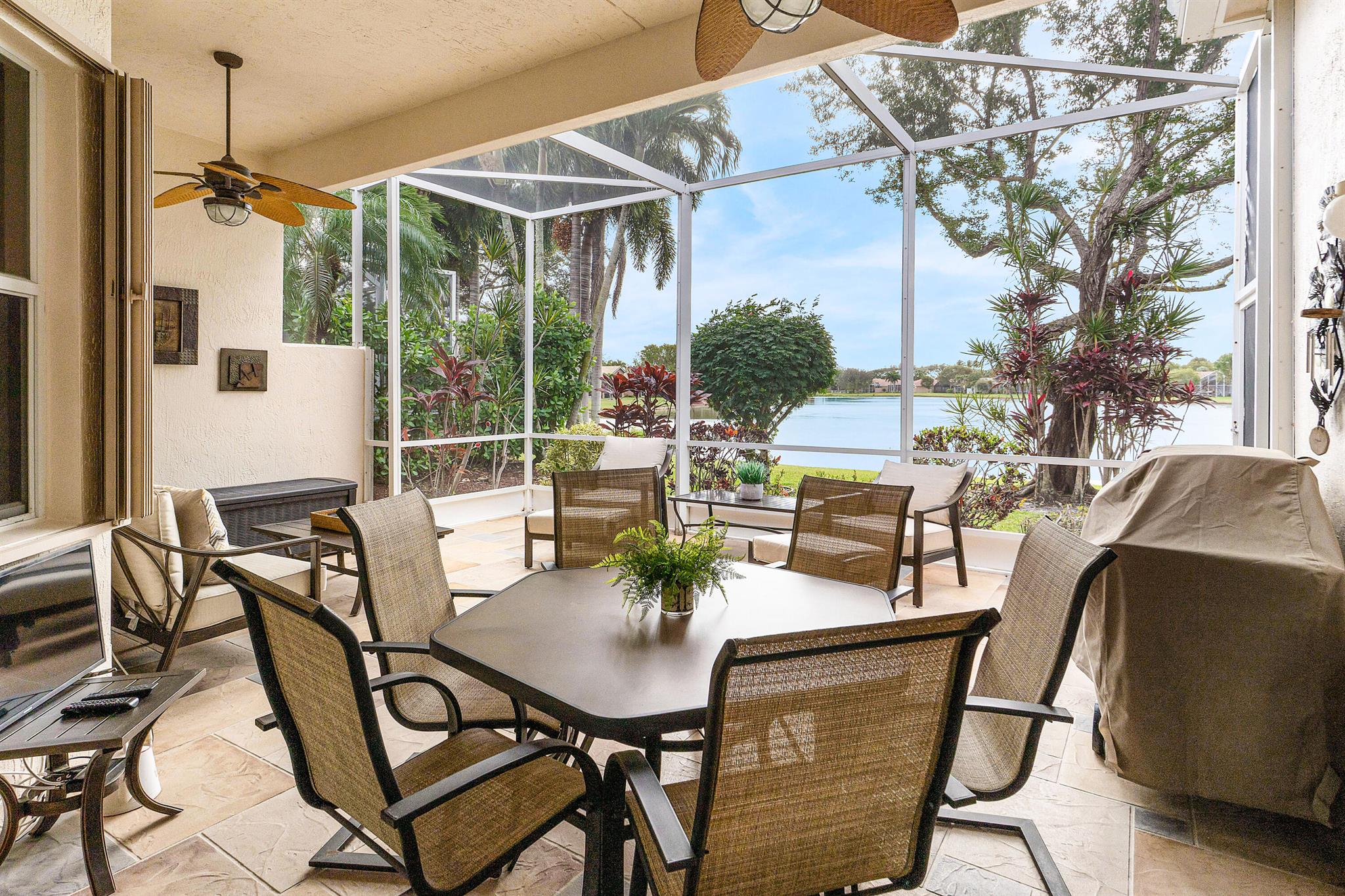 LOVELY NOVARA MODEL WITH AMAZING WATER VIEWS STRAIGHT DOWN THE MIDDLE OF THE LAKE. PORCELAIN TILE PLACED ON THE DIAGONAL THROUGHOUT. CARPET IN BEDROOMS. TWO YEAR OR LESS NEWER KITCHEN APPLIANCES. DOUBLE OVEN AND BOCHE DISHWASHER. EXTENDED PATIO WITH A NEW TILE FLOOR AND BRAND NEW OUTDOOR FURNITURE. CEILING FANS IN ALL ROOMS. ACCORDIAN HURRICANE SHUTTERS. NOTHING TO DO BUT MOVE IN.VILLAGGIO HAS A SEPARATE FITNESS CENTER WITH LOTS OF EQUIPMENT, INDOOR POOL, AND AEOROBICS ROOM. RAQUETBALL, PICKLEBALL, TENNIS, BOCCE BALL AND HAIR SALON. THERE IS A PRO ON SITE FOR LESSONS AT ANY TIME. SOCIAL HALL WITH PARTY ROOM AND STAGE FOR SHOWS, CARD ROOMS, BILLARDS, ARTS AND CRAFTS, CAFE WITH TABLE SERVICE, AND LARGE OUTDOOR POOL.
