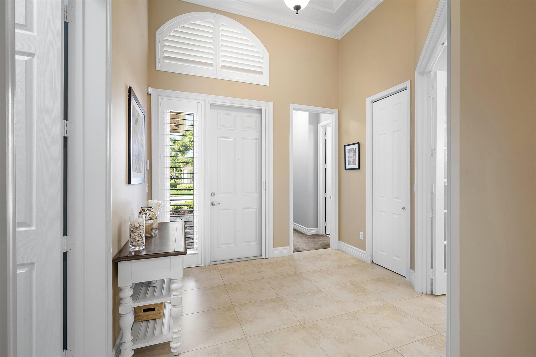 Beautiful 2/2.1+den Atlantic Grande model on lushly landscaped private lot. The home, with open concept plan, has impact windows, phantom screen, porcelain tile, crown moldings, plantation shutters, light fixtures, hi-hats, fans & upgraded baths. The gourmet kitchen has white wood cabinetry, pantry cabinet with drawers & pull-outs, granite countertops, tile backsplash, stainless steel appliances and all the bells & whistles! There is a large counter depth snack bar with pendant lights, separate breakfast area and a dining room. The great room sliders have Hunter Douglas luminettes. Master suite with tile floor, outfitted closets and luxurious bath. Ensuite guest suite. Den with glass French doors & built-in desk unit. You'll love the wraparound screened porch and extended open patio area.