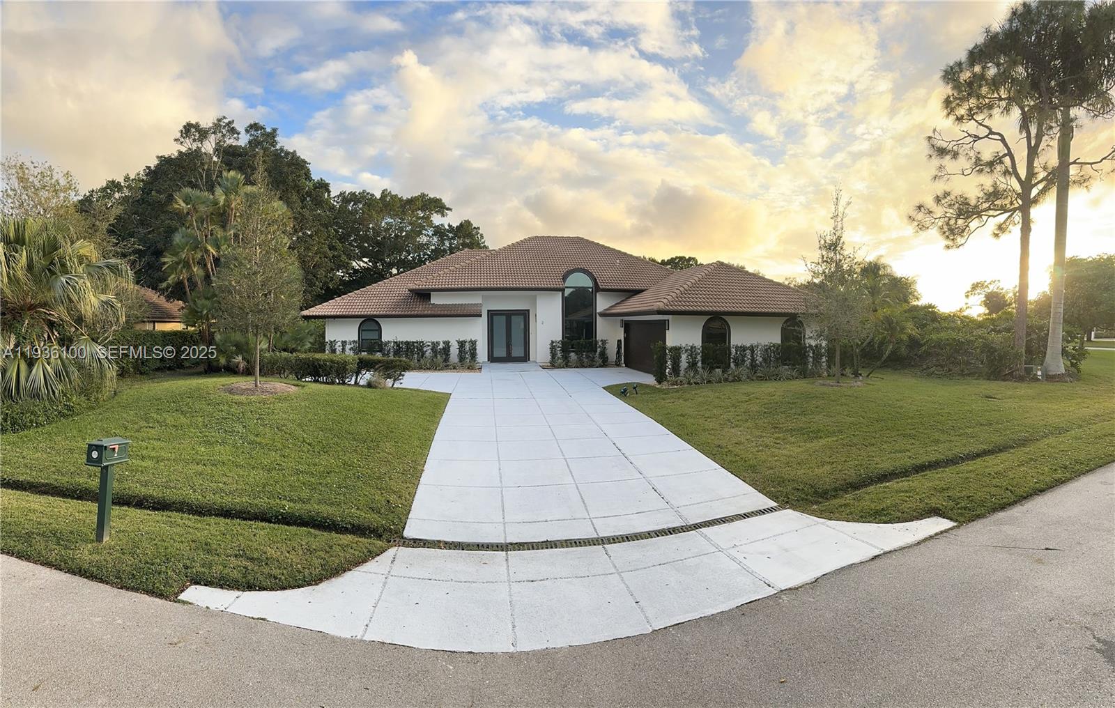 Don't miss this opportunity. This recently renovated 3,113 SF One-Story home with High Ceilings, 4 bedrooms, 3 1/2 baths Is for Sale, Facing the Squire Golf course BY the tee box # 14 with breathtaking golf course views, a lot of natural light, unique & irreplaceable lot, New Hurricane Windows, brand new chef's kitchen features 2 dishwashers, two sinks (37 1/2" & 20 1/2"), high-end appliances, wall mounted oven & Microwave, wet bar with undercounter refrigerator, wine cooler, sink & Quartz tops. 2 fire places (wood & electrical), Renovated bathrooms, Tile floors, Closet organizers, the pool was resurfaced in 2023, there is a screened patio and child fence for the swimming pool that is removable, no pool heater is present, and the pool water is chlorinated. for more details, Please Read the attached list of upgrades and house monthly expenses. This house won't last long on the market. SHOWINGS WILL BE AVAILABLE STARTING SATURDAY, 01/03/2026, AT 1 p.m.