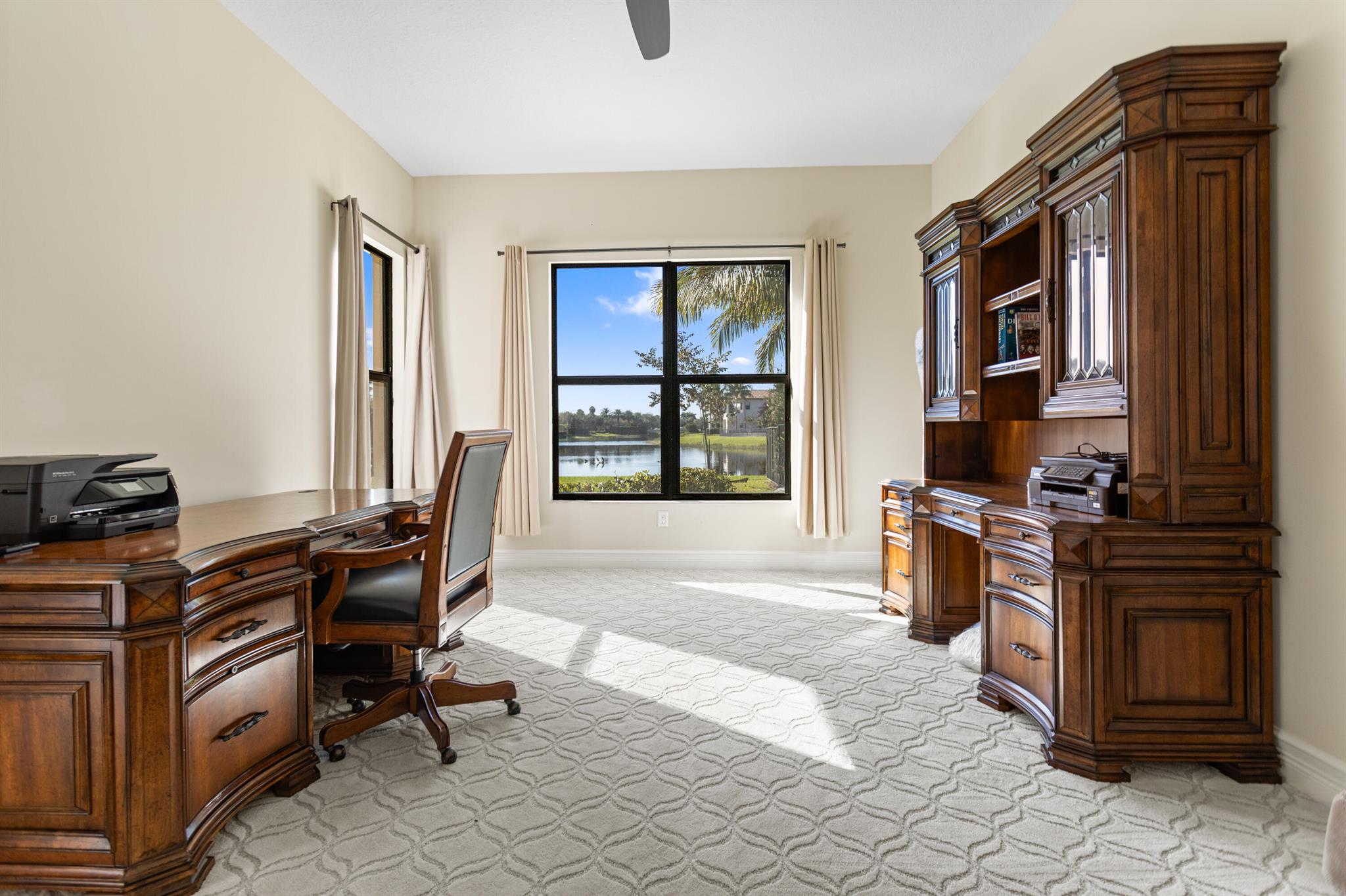 Lake-view home in a luxury communityThis home offers 4 bedrooms and 5 bathrooms, along with a first-floor flex room that can be used as a home office or playroom. The spacious kitchen features a large island and opens to a bright everyday dining and living area with a beautiful lake view. A formal dining room, separate laundry room, and a two-car garage with a Tesla charger add comfort and functionality. Tinted windows throughout the home provide additional privacy. The open porch overlooking the lake is a great place to relax and enjoy the view. The community offers a wide range of amenities including pools, jacuzzi, splash pad, saunas, fitness center, tennis and pickleball courts, basketball courts, indoor gym, card room, kids' playroom, on-site restaurant and more.