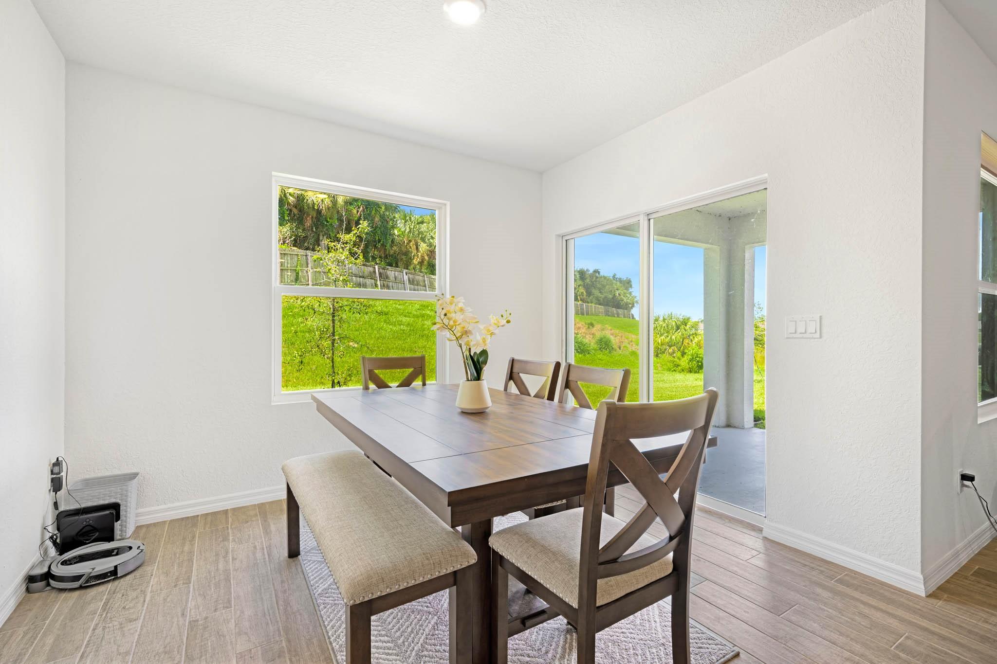 Welcome to the Eden, a beautifully designed 4-bedroom, 2-bath home with a 2-car garage, perfectly situated on a premium pie-shaped lot offering added privacy, extra space between homes, and stunning water views. Enjoy peaceful sunrises and sunsets from your own backyard. Inside, you’ll find premium porcelain tile flooring throughout, a spacious open-concept layout, and a chef-inspired kitchen featuring granite countertops, upscale cabinetry, and a large center island ideal for entertaining. Both the kitchen and bathrooms showcase elegant granite finishes, premium gable roof and low HOA fees. Near I-95, turnpike, parks, shopping, dining, beaches. No Flood Insurance.