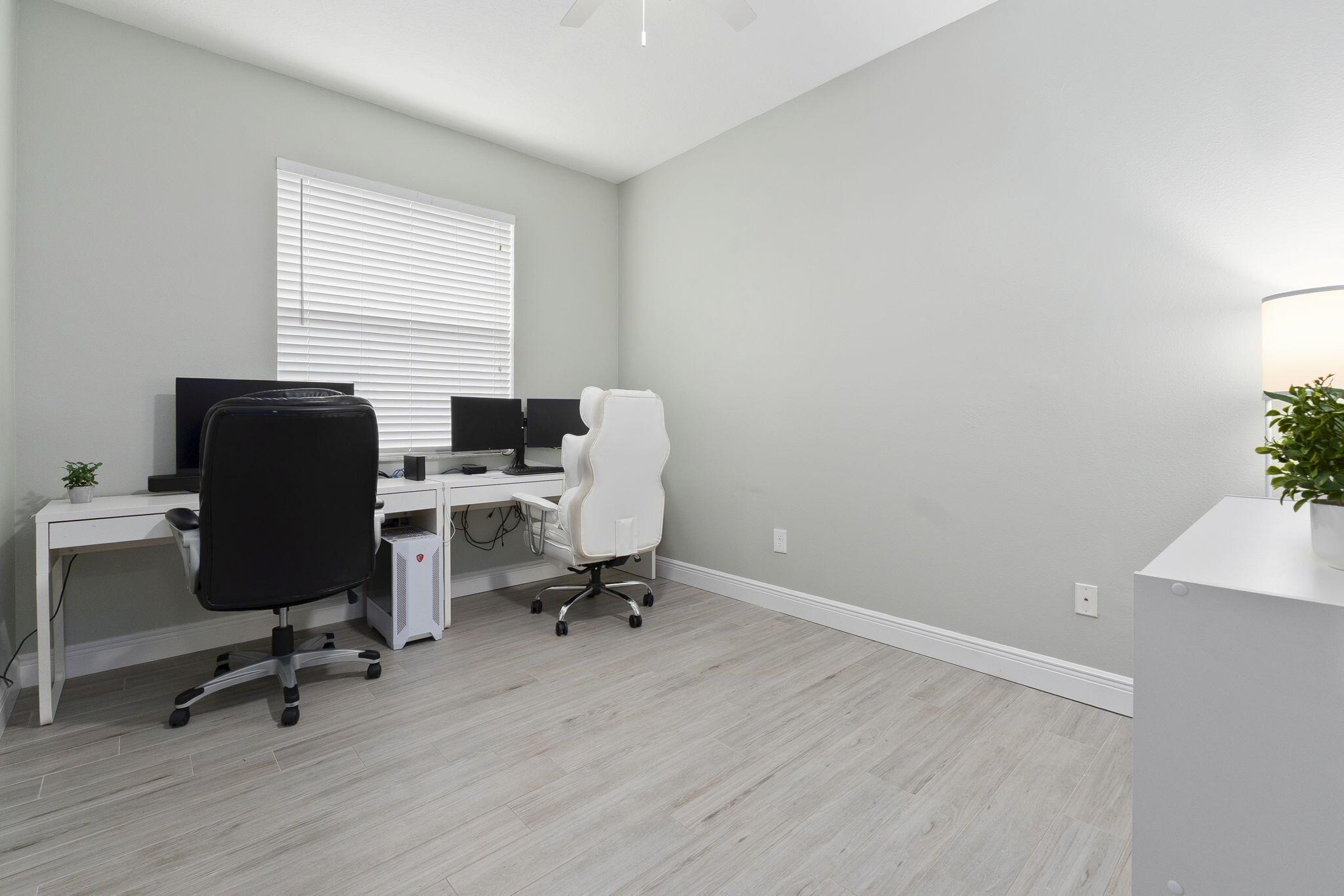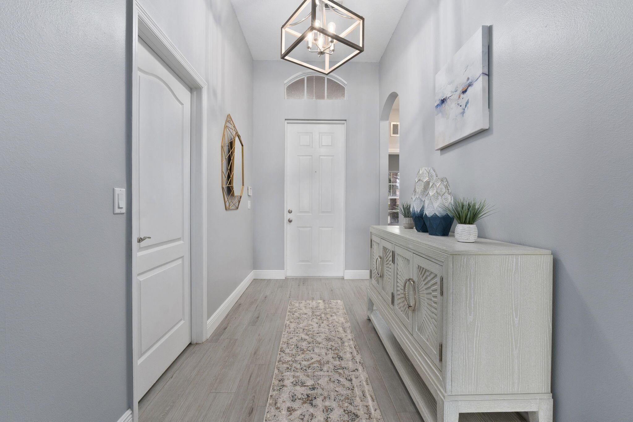 Beautifully maintained 4-bedroom, 2-bath residence located in a desirable gated community with serene lake views. Enjoy Florida living at its best from the covered lanai overlooking the water.Inside, the home features a newer, kitchen complete with stainless steel appliances and a farmhouse sink, a cozy breakfast area, and a seamless flow ideal for everyday living and entertaining. Wood-look tile flooring throughout adds warmth and durability, while the tranquil, neutral color palette creates a light and inviting atmosphere. This home is truly move-in ready.Just a short walk to clubhouse, residents enjoy resort-style amenities including a pool, spa, fitness center, and tiki hut. The HOA covers lawn maintenance, irrigation, basic cable. Enjoy Tradition shopping and dining!