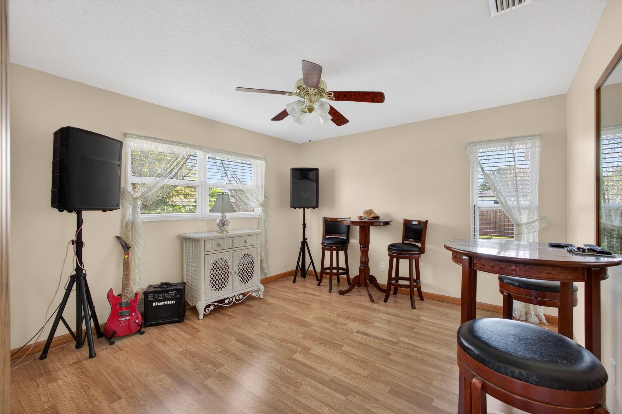 Welcome to this well-maintained 3-bedroom, 2-bath, 2-car garage home located in the desirable Indian River Estates community of Fort Pierce. This property offers a prime location just minutes from area beaches, shopping, dining, and major roadways, while also benefiting from county-only property taxes and public water.The home features a split floor plan, high ceilings, and a unique interior design that provides both comfort and functionality. Vinyl laminate wood flooring runs throughout the main living areas, and the kitchen offers brand new stove, remanufactured Granite, ample cabinet space for storage and everyday use. One bathroom includes a roll-in shower with wheelchair accessibility, adding flexibility for a variety of living needs.