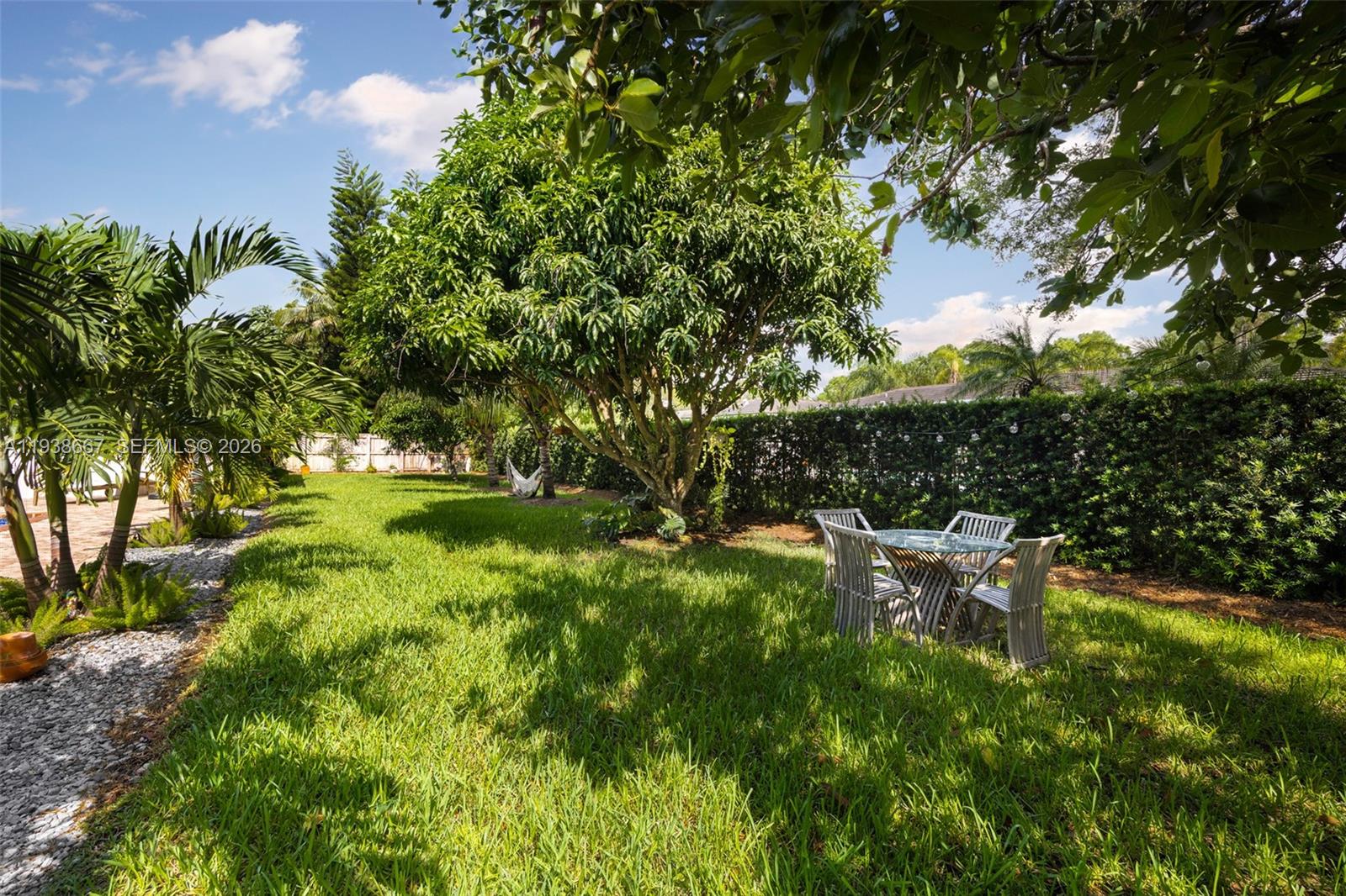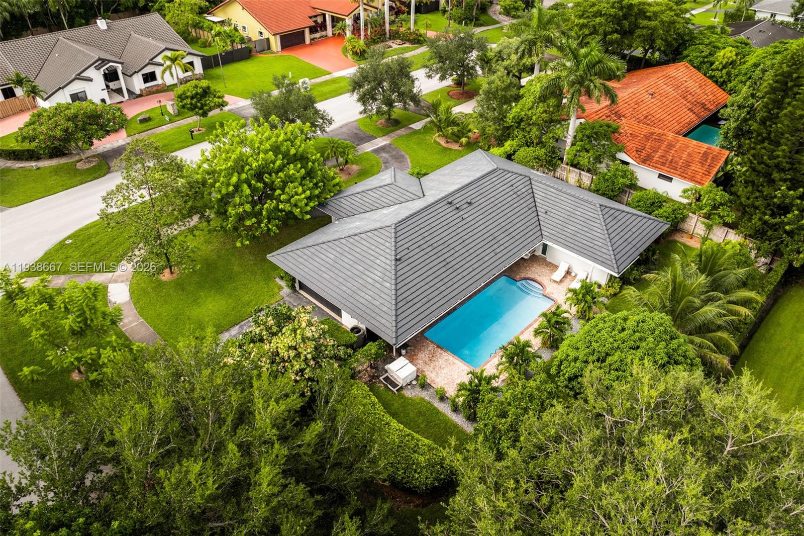 Tucked beneath swaying palms on a coveted Palmetto Bay corner lot, this renovated 4-bedroom, 2-bath pool home delivers true South Florida living. Lush tropical landscaping surrounds a private backyard with sparkling pool, covered patio, and mature trees—ideal for relaxing or entertaining year-round. The renovated kitchen features high-end appliances and overlooks the pool and outdoor living areas. A charming “secret garden” on the side of the home offers space for herbs, vegetables, or a quiet retreat. Additional highlights include a 2-car garage with side-street access, circular driveway with ample guest parking, and easy access to Old Cutler Road. A rare Palmetto Bay opportunity blending privacy, functionality, and lifestyle.