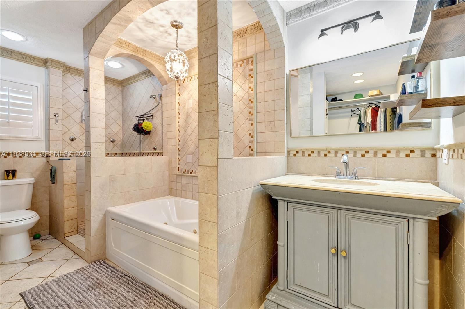 • Característica Interior:BreakfastBar, BreakfastArea, DiningArea, SeparateFormalDiningRoom, GardenTubRomanTub, JettedTub, SeparateShower, VaultedCeilings, WalkInClosets