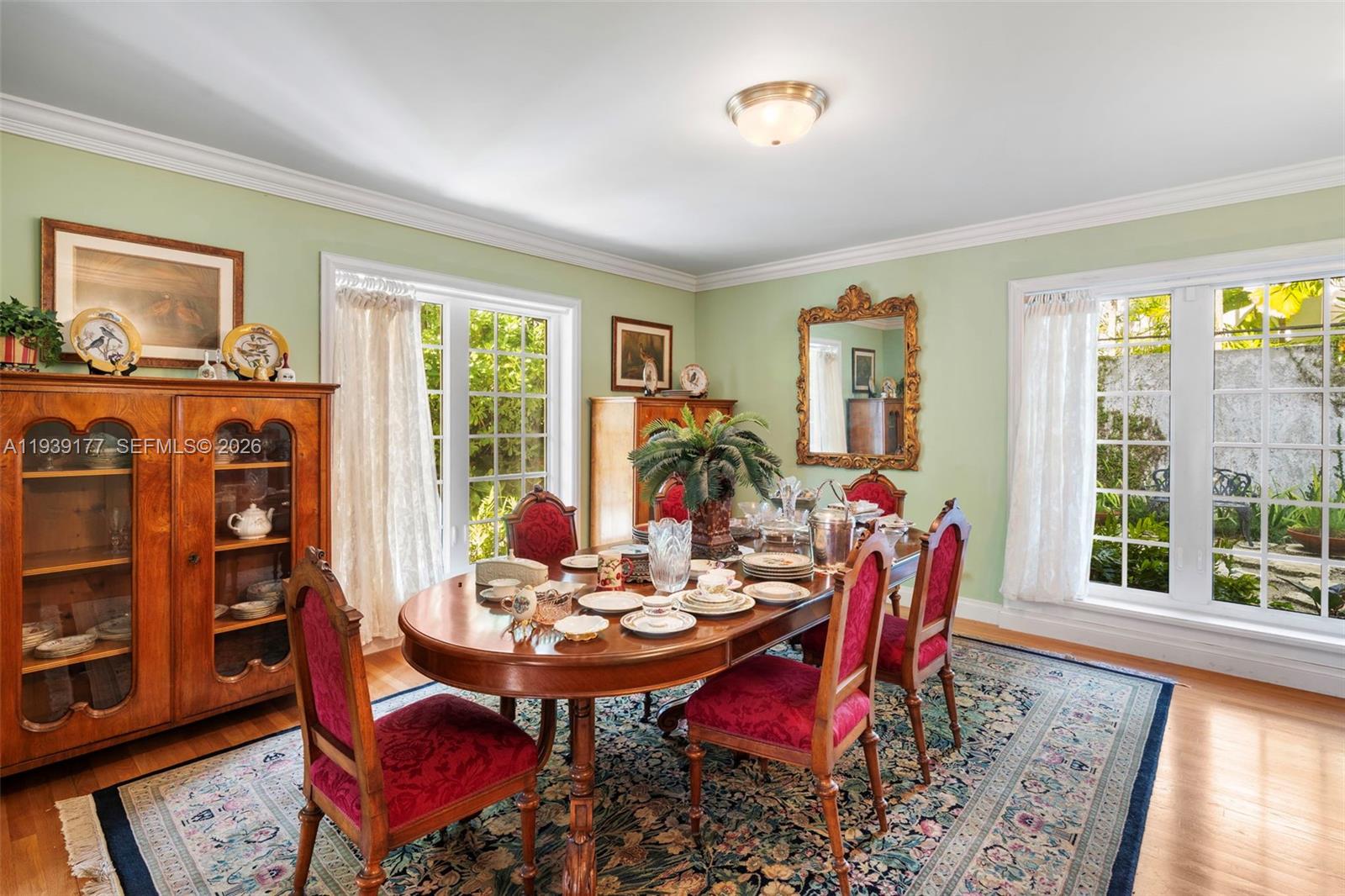 Perched on a natural ridge in the exclusive gated Moorings enclave, this 3-story classic Key West-style home is sited just 1 door in from the private community marina. Its premier location in the Grove’s most highly sought niche bayside neighborhood (only 42 homes where resident permission is required for entry!) makes this unique property all the more rare. Its coveted, walkable Main Hwy locale, just blocks from the Grove’s charming “downtown” village, enhances quality of life. The timeless Charles Harrison Pawley-designed residence features a new metal roof, new impact windows/doors, wraparound porches, volume ceilings, generously scaled interiors w/ oak floors & elevator. Its concrete construction is faced w/ resilient composition clapboard; its expansive covered porches offer gracious outdoor living across 2 floors; its formidable pedigree & great bones provide myriad options for simple refinements or curated updates. Floor 1: Formal living & dining rooms enjoy abundant natural light. Big, bright, beautiful eat-in kitchen. Floor 2: Exceptional vaulted primary suite appointed w/ His & Hers baths & walk-ins; 3 additional bedrooms; full laundry. Floor 3: Architecturally distinctive flexible space appointed w/ office & gym-easily converted to playroom, studio etc. Ground Level: 4/6-car capacity garage, full bath & vast storage that could be reimagined. Chicago brick patios & paths frame the mature tropical landscape. Peerless location, timeless design, unlimited potential.