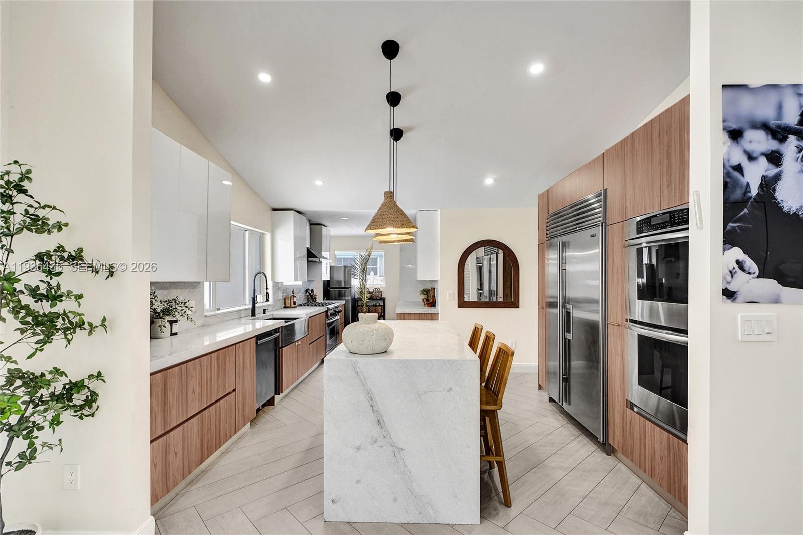 This fully remodeled waterfront home at Enchanted Lakes features a bright and open-concept design that blends modern elegance with comfort. The spacious living area is filled with natural light and flows seamlessly into a newly renovated kitchen with brand-new appliances, custom cabinetry, and a large island ideal for both everyday living and entertaining. The home’s interior showcases high-quality finishes, clean architectural lines, and warm neutral tones that create a welcoming and sophisticated atmosphere throughout. Thoughtful details and contemporary design elements enhance every space, making the home move-in ready. Minutes to I-95, A+ schools, beaches, fine dining, and shopping. Walk to houses of worship. This one-of-a-kind property is not to be missed! Outdoors, the property offers a private oasis with a pool, expansive deck areas, and a relaxing cabana, perfect for enjoying the tropical setting. With direct water access, owners can launch a jet ski directly from the property and reach the ocean, making this home ideal for boating and water sports enthusiasts. Combining modern upgrades, stylish interiors, and exceptional waterfront access, this property delivers an outstanding lifestyle opportunity.