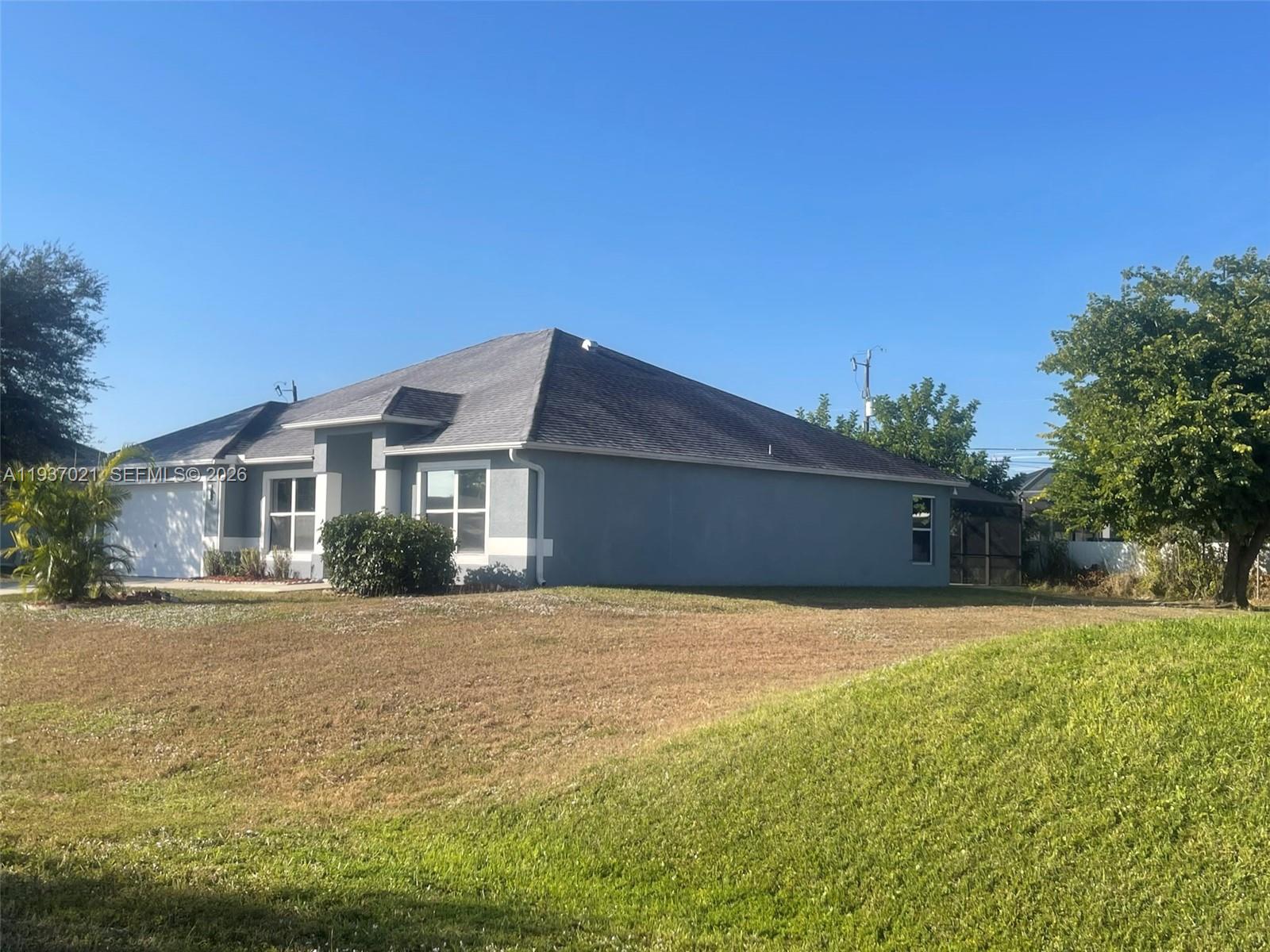 Beautiful 4Bd/2Ba + Den POOL HOME! On an OVERSIZE LOT!!! Welcome to your dream home in Cape Coral! This stunning home has been fully updated and features elegant 12 x 24 Porcelain Tiles throughout. The gorgeous kitchen offers Granite Countertops, a stylish tiled backsplash, new modern cabinetry, and stainless steel appliances, making it a chef's paradise. The den offers an ideal workspace for those who work from home or need a quiet area to study. Spacious master bedroom with walk-in closet. Amazing master bathroom with double sinks and granite countertops, for added convenience and luxury. Large jacuzzi tub and tiled shower. Spacious outdoor screened in lanai with large inground POOL. Enjoy Florida living in your very own perfect oasis for relaxation and entertainment. Situated on an oversized lot offering extra privacy and plenty of outdoor space for gardening, playing, or hosting gatherings. Conveniently located close to shopping, dining, and more! Don't miss out on the opportunity to make this your forever home and enjoy the ultimate in outdoor entertaining and relaxation.