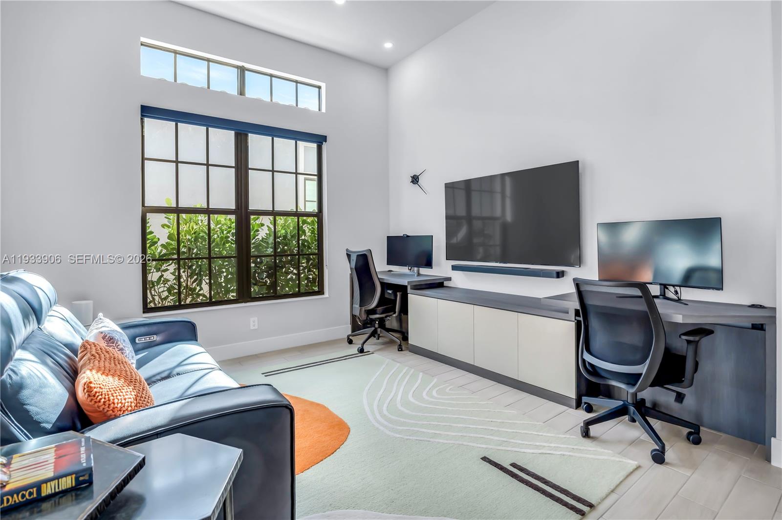 This upgraded 3-bedroom, 2-bathroom home offers an open, light-filled living and dining area that flows seamlessly into the kitchen, creating an inviting space ideal for everyday living and entertaining. Wood-tile flooring runs throughout with no carpet, while the thoughtfully designed kitchen features quartz countertops, tile backsplash, pantry, soft-close cabinetry with pull-out drawers, built-in garbage and recycling containers, dedicated power outlets for small appliances, a sleek vent hood, reverse-osmosis drinking water faucet, and a Samsung Bespoke refrigerator with interchangeable color panels—perfect for personalizing the space and brightening your season with holiday colors or a modern year-round look. The layout continues into spacious bedrooms enhanced with remote-controlled blinds, complemented by custom built-ins throughout the closets and living areas. Sliding doors extend the living space outdoors to a peaceful, private yard with a screened and covered lanai, while additional highlights include Wi-Fi-enabled automated lighting, a whole-home water softener, EV charging in the garage, and access to resort-style community amenities including a clubhouse with theater, card rooms, billiards, ballroom, lounge, on-site café, fitness center, resort-style pool and spa, outdoor kitchen and lounge areas, pickleball and bocce ball courts.