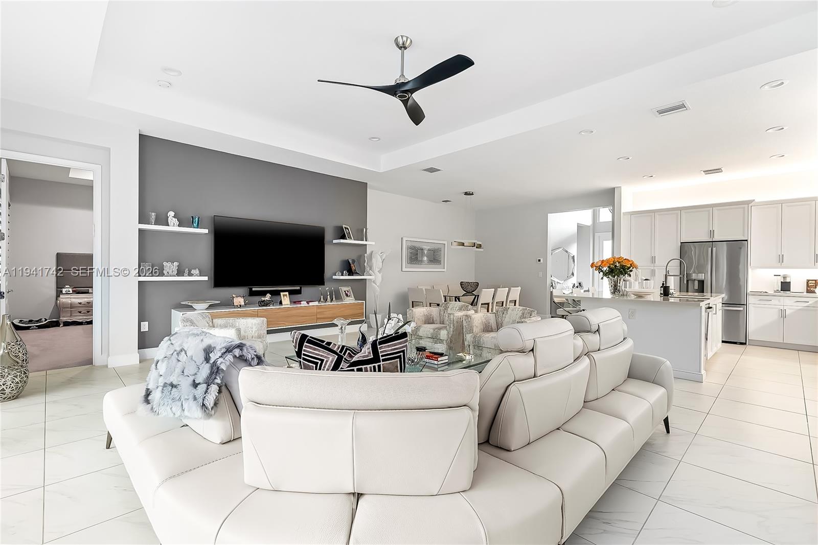 Absolutely gorgeous 3-bedroom, 2.5-bath residence offering 2,222 SF in the highly desirable Polo Trace community. This gated neighborhood provides a clean, safe, and upscale lifestyle with NO mandatory membership. The home has been fully renovated from A to Z! Everything is brand new! High ceilings, abundant natural light, and elegant finishes create a bright and modern feel throughout. The stunning kitchen features quartz countertops and backsplash, generous storage, and soft-close custom cabinetry. The expansive open-concept living and dining areas are enhanced by white porcelain tile throughout. Major systems are in excellent condition, roof and A/C are only 4 years old. The spacious primary suite offers dual walk-in closets with custom closet cabinetry and split vanities. Additional highlights include a separate laundry room with extra storage, a large garage with added storage, and a spacious backyard completed with pavers and fencing, perfect for entertaining and offering privacy, with room for a future pool. Enjoy resort-style amenities including 2 miles of walking paths, 6 tennis courts, 4 pickleball courts, a basketball court, resort-style pool, tot lot, 24-hour fitness center, full-service restaurant, and more. A must-see home that shows beautifully!