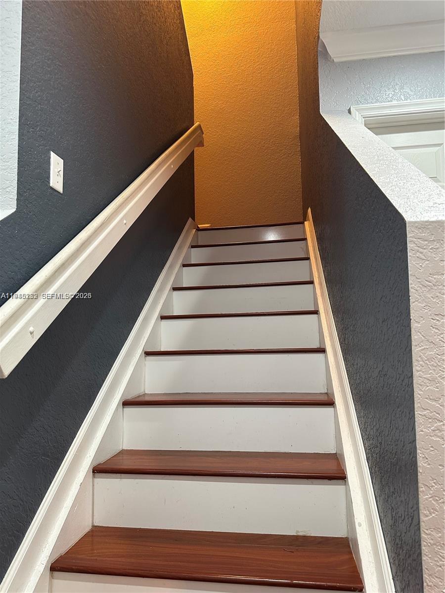 Beautiful 3 bedroom 2 1/2 bathroom townhome. Entering Kitchen is on the right wood cabinets, stainless steel appliances and eat in area, tile throughout the 1st floor, continuing the staircase on left and 1/2 bathroom then the living room area to the left & to the right the dining area with sliding glass door with pool area view. Going to the second floor laminate wood floors, to the right 2 large rooms in the center of the hall a full bathroom and to the left the master bedroom and master bathroom. Property is centrally located to near by Shopping Malls