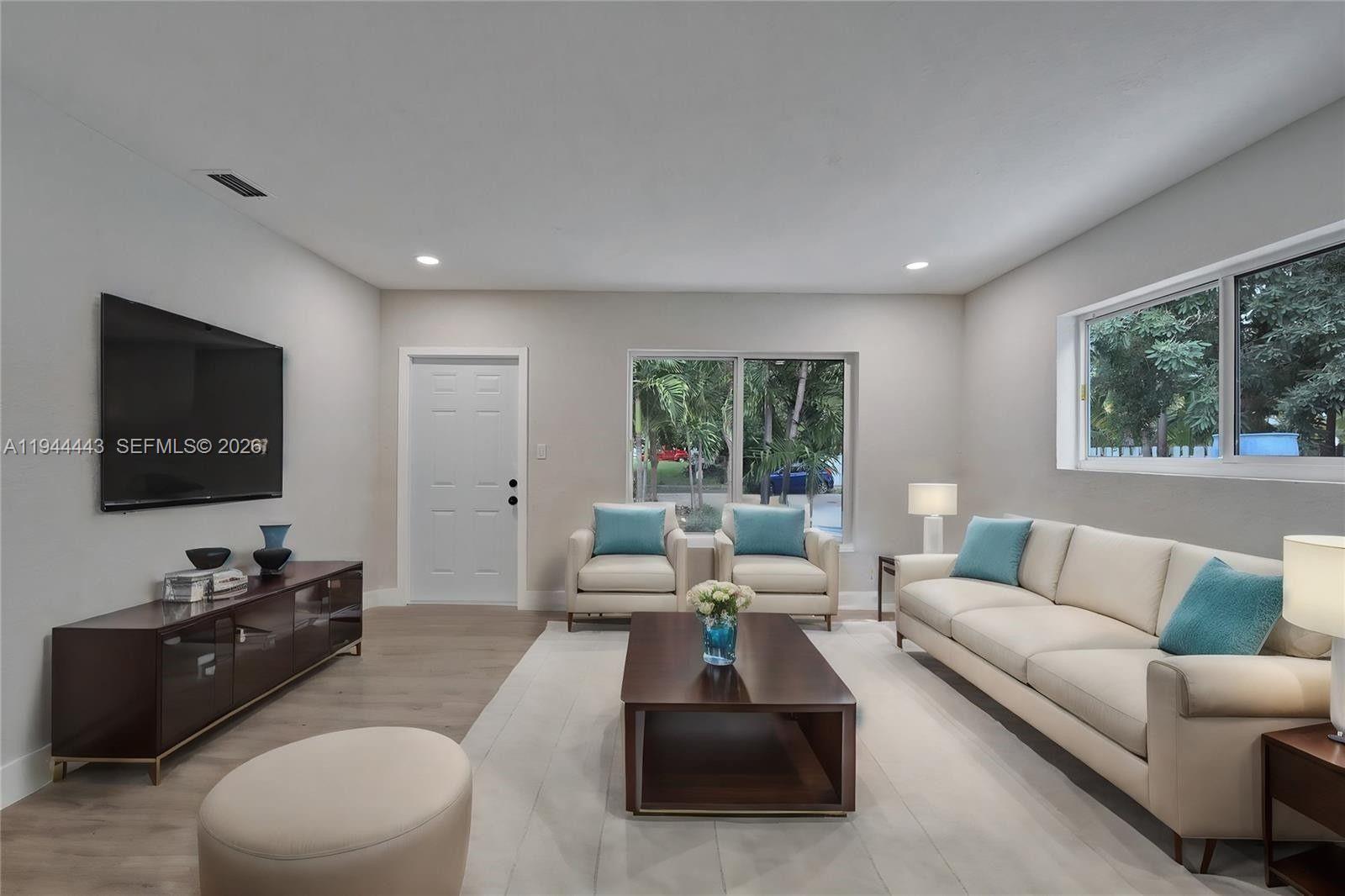PRICED TO SELL!!! TURN KEY!!! Completely Renovated Ives Dairy home with over $130K in upgrades and 1,000+ SF of living space. This 3BR/2BA residence features an Italian gourmet kitchen with quartz countertops, custom soft-close cabinetry, and stainless steel appliances. Bathrooms include glass showers and modern vanities. Freshly painted interior, impact windows/doors, and screened patio. Newly resurfaced and tiled pool, fenced yard, and new driveway. Large 7,500 SF lot with ample backyard space for entertaining.
