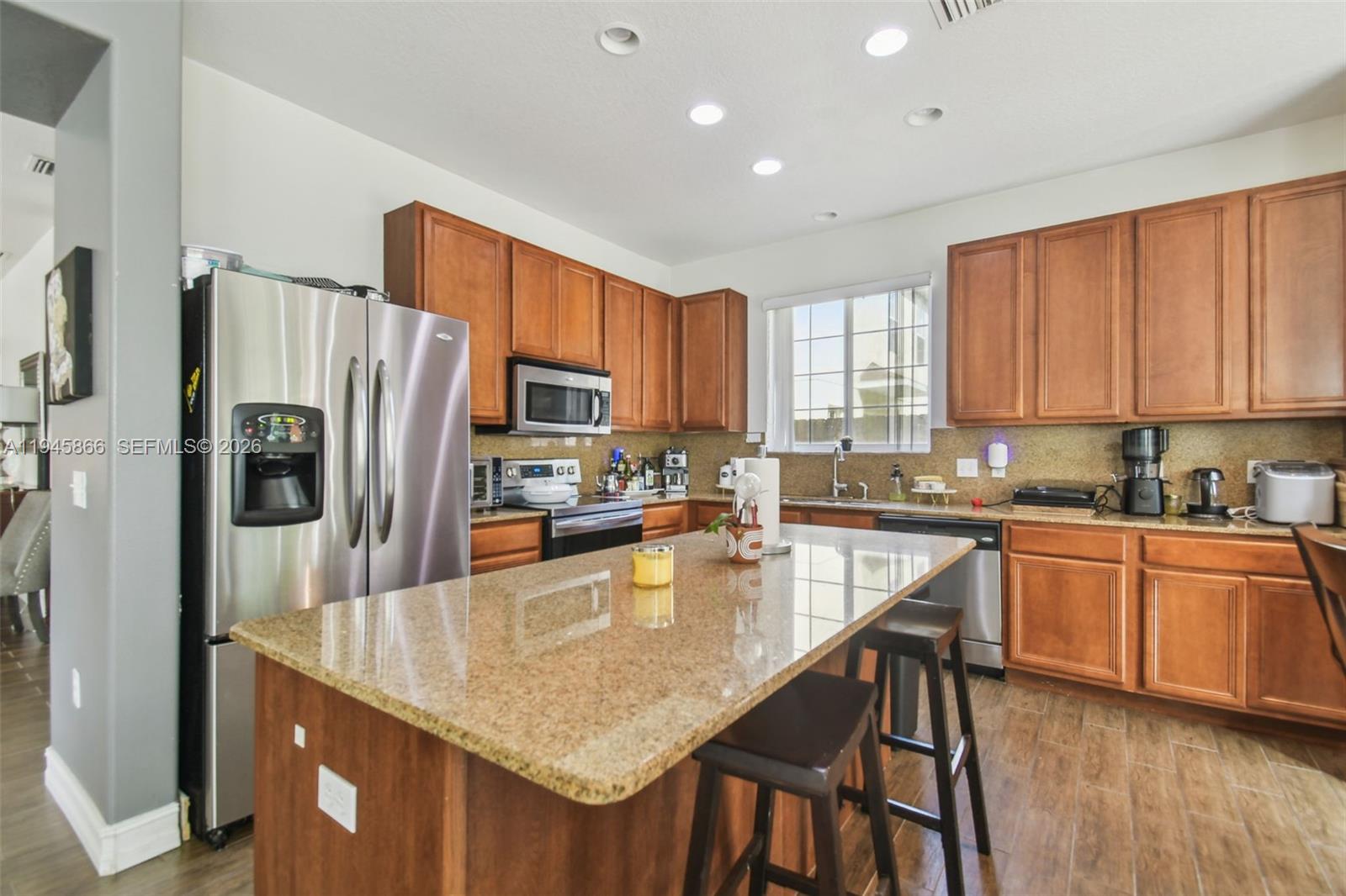 This BEAUTIFUL 4/3, 2 CAR-GARAGE HOME has been appointed with STYLISH UPGRADES and has a SMART FLOOR PLAN. With lots of common areas, this home is great for entertaining or even generational families! Upon entering, you’ll notice the common areas are graced with WOOD-LOOK TILE in the Living Room / Dining Room Combined Area, as well as the Kitchen / Family Room Combined Area. The Kitchen boasts GRANITE COUNTERTOPS, STAINLESS STEEL APPLIANCES, and an EAT-IN DINING AREA. Maybe the best part about the downstairs is that it has a BEDROOM and FULL BATH! Meanwhile, UPSTAIRS not only has 3 BEDROOMS and 2 UPGRADED FULL BATHS, but it has a common LOFT SPACE. bask in the luxury of the SPA-LIKE ENSUITE flaunting a HUGE SHOWER with a GLASS BARN DOOR, CHIC TILE PATTERNS, not one but TWO RAIN SHOWER HEADS with WANDS, a convenient NICHE, and a WINDOW that lets in PLENTY OF SUNSHINE! There’s also a DOUBLE VANITY with VESSEL SINKS and UPGRADED MODERN FIXTURES! The other FULL BATH upstairs echoes the same theme with yet another shower with a GLASS BARN DOOR, CHIC TILE PATTERNS, This VANITY also flexes a VESSEL SINK and UPGRADED MODERN FIXTURES! And if you love convenience, make sure to take note of the UPSTAIRS LAUDRY ROOM! This home has a PRIVATE BACKYARD Home also is fitted with double insulation. This lovely home is in a NO FLOOD ZONE, has NO CDD FEES, and a low monthly HOA that allows for a playground, basketball court, and volleyball court. ROOF 2023. Come see it to believe it!