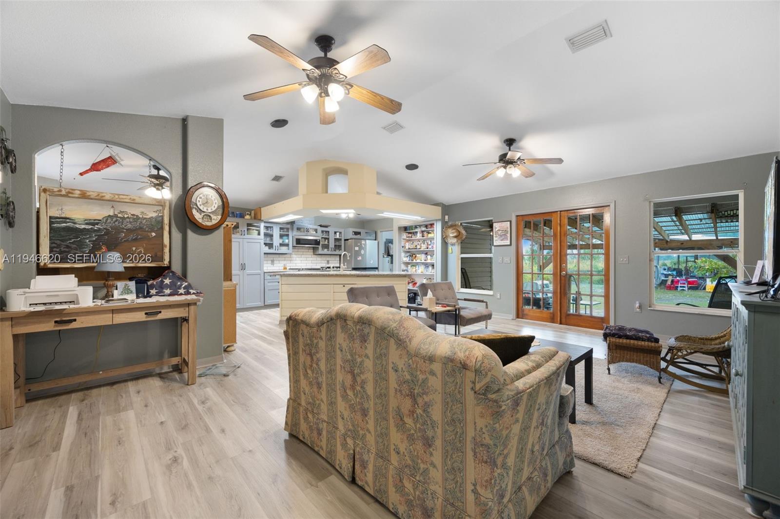 Centrally located just 1.5 hours from Miami/Fort Lauderdale or Fort Myers, this charming home delivers the best of the Florida waterfront lifestyle. Positioned directly across from the Ortona boat ramp, you’ll enjoy effortless access to the Caloosahatchee River—part of the Intracoastal Waterway with deep water access to the Gulf, Atlantic, and Lake Okeechobee. Simply walk across the street to fish, launch your boat, or relax while taking in peaceful river views. Inside, the home features a spacious open-concept great room and an updated kitchen with a gas range, newer cabinetry, pantry, and appliances—all less than four years old. An oversized laundry room includes a newer washer and dryer for added convenience. The 15' x 15' primary suite offers a private retreat with a large walk-in closet and an updated shower. Energy-efficient solar panels help keep electric costs low. Outdoors, the fully fenced property is packed with extras, including a 36' x 24' pole barn with electric service and a versatile 34' x 11' he/she shed equipped with electric, water, and A/C—perfect for a workshop, hobbies, or a personal retreat. Plus: This property is available turnkey—just bring your toothbrush and start enjoying the river lifestyle!