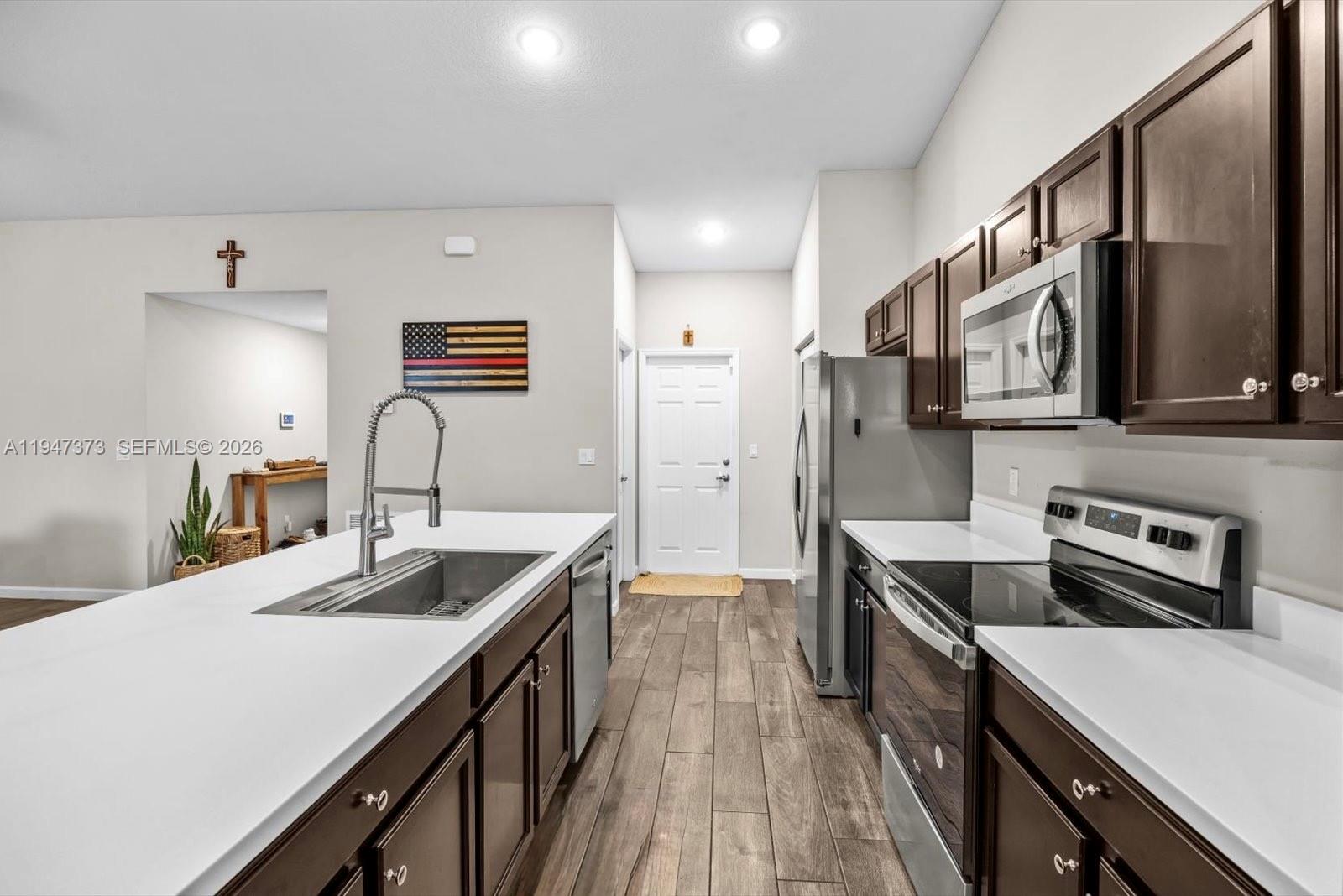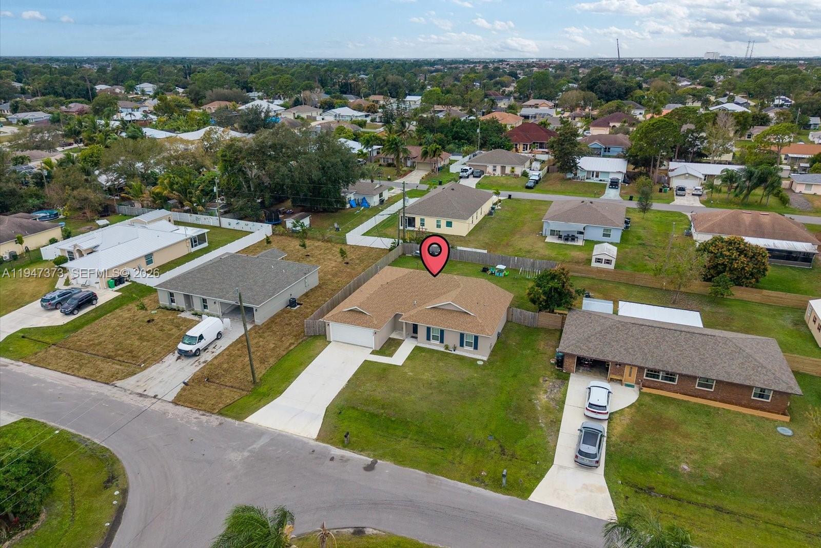 Exceptionally maintained 2023 built single family home offering modern comfort, space, and functionality with no association restrictions. Located in the continuously growing city of Port St. Lucie, this property is situated on an expansive 10,000 sq ft lot, providing exceptional flexibility and outdoor potential. Featuring 4 bedrooms and 2 bathrooms, the home offers a bright open concept layout ideal for both everyday living and entertaining. The kitchen flows seamlessly into the main living and dining areas, creating an inviting space filled with natural light. The spacious primary suite serves as a private retreat, complete with a large bedroom and his-and-hers closets for ample storage. Additional bedrooms are generously sized and versatile, perfect for family, guests, or a home office. Step outside to a covered back patio, ideal for hosting gatherings or relaxing while overlooking the oversized backyard. With side access and ample space to store a boat or RV, this property is perfect for those who value freedom and flexibility. With modern finishes, thoughtful design, and no HOA limitations, this move-in-ready home offers comfort, convenience, and room to grow in one of South Florida’s most desirable and fast-growing areas.