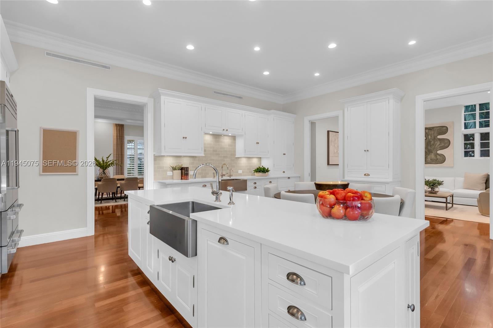 Anything but average. Set inside Stonegate, a private enclave of just 12 homes in Miami's Ponce Davis neighborhood, this French Provincial estate occupies a rare end position on a 32,496 sq ft oak-canopied lot. The approach is long and intentional. Inside, 6,135 sq ft feels warm, grounded and thoughtfully scaled, featuring 6 en-suite bedrooms, including a private upstairs primary suite, a grand library/den, and spaces designed to be lived in. The kitchen & living areas open naturally to a covered patio, pool, fire pit, and sunken trampoline, creating a setting equally suited for everyday life and entertaining. With a 3-car garage, full home generator, smart systems, & guarded entry from dusk to dawn, this home speaks to buyers who value discretion, permanence, and quality over spectacle.