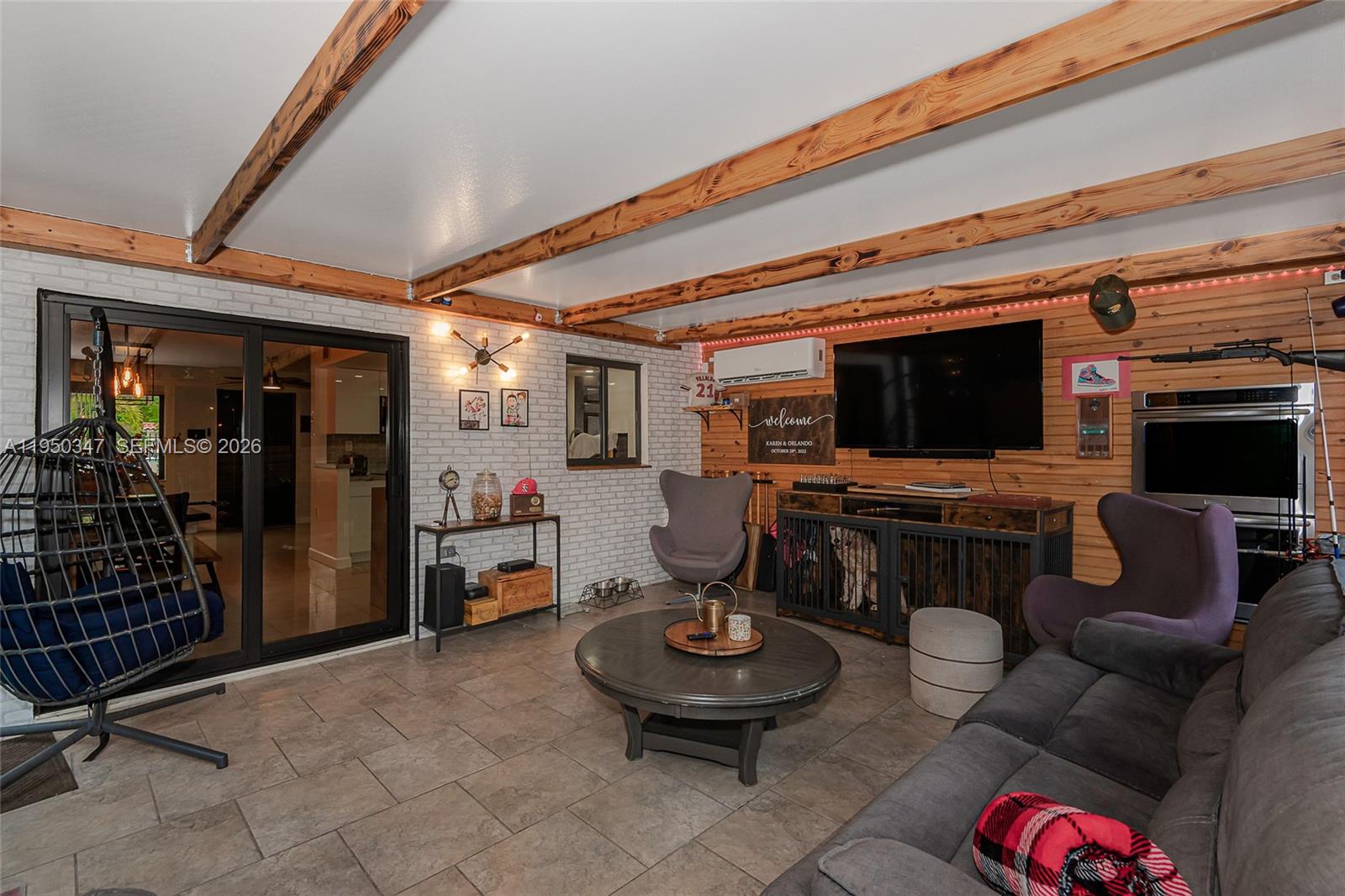 Beautiful townhouse located near shopping, dining, schools, and major roadways. Originally a 4-bedroom, 2-bath layout, this home is currently configured as a spacious 3-bedroom, 2-bath residence. Easily reverted back. One bedroom and a full bathroom are conveniently located on the first floor. The expansive primary suite features a wall-to-wall walk-in closet with LED lighting and a renovated primary bathroom. The kitchen and family room offer open sightlines and generous space, perfect for both everyday living and entertaining. Enjoy abundant parking and storage, plus a large private patio/outdoor area with wrought-iron gates—ideal for outdoor gatherings, play, and relaxation. Recent upgrades include a tankless water heater (2025), central A/C system (2025) with brand-new ductwork, impact windows throughout, and two mini-split A/C units for added efficiency and comfort. Washer and dryer installed in 2022. A move-in-ready home offering comfort, functionality, and peace of mind.