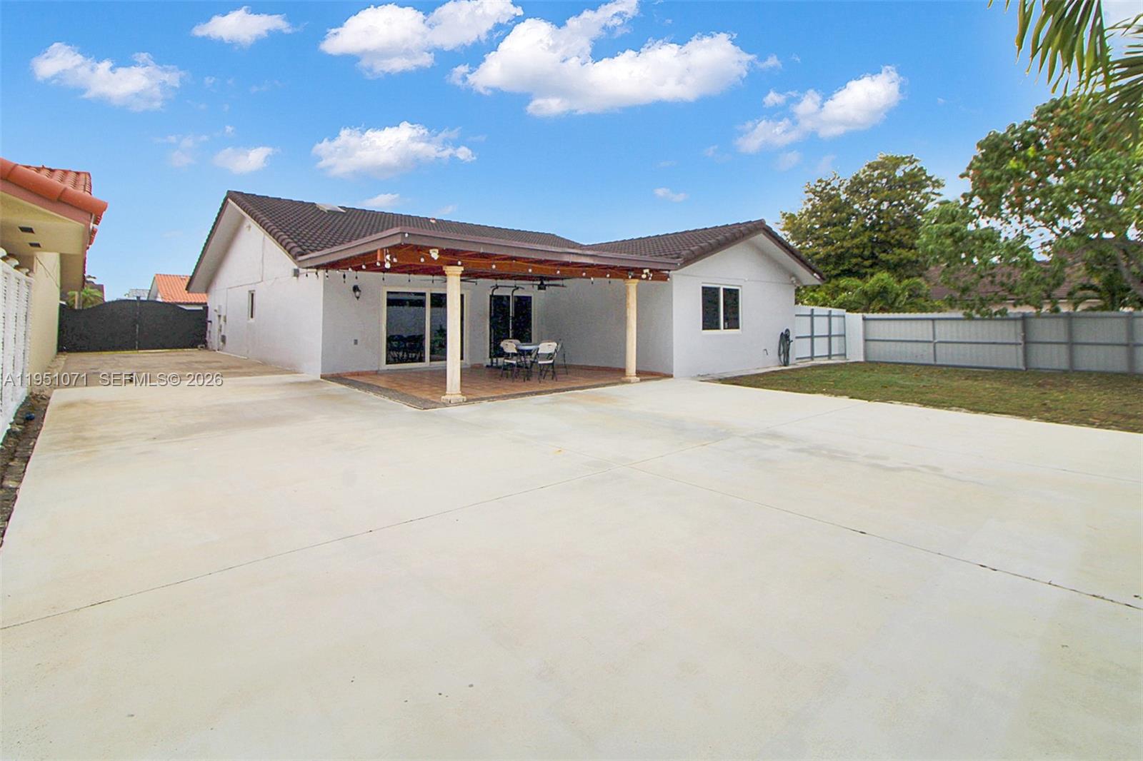 Beautiful corner 3-bedroom, 2-bathroom home, rarely available in this West Kendall neighborhood. Have a boat, RV, or work vehicles? This property offers ample space to store them safely on your own lot. Home features include a newer barrel tile roof (2014), impact windows and doors, newer central A/C (2019), hot water heater (2022), five security cameras, Ring doorbell, and a metal privacy fence. Entertain friends and family with a large covered terrace and an expansive yard.