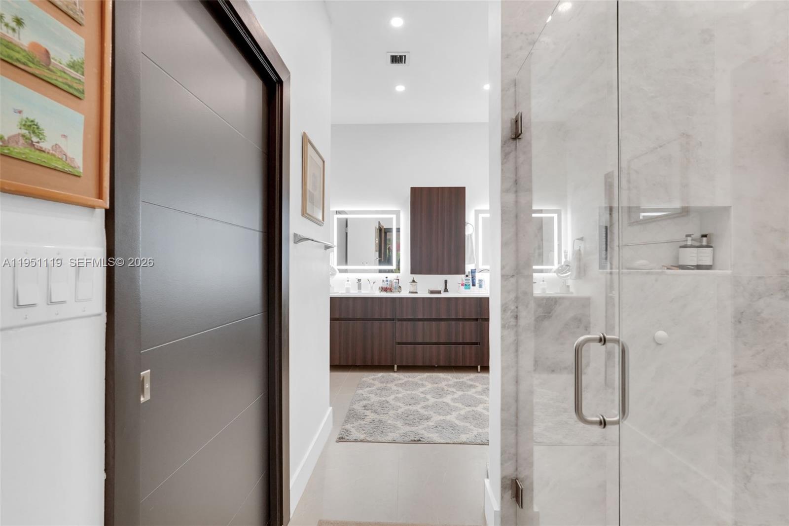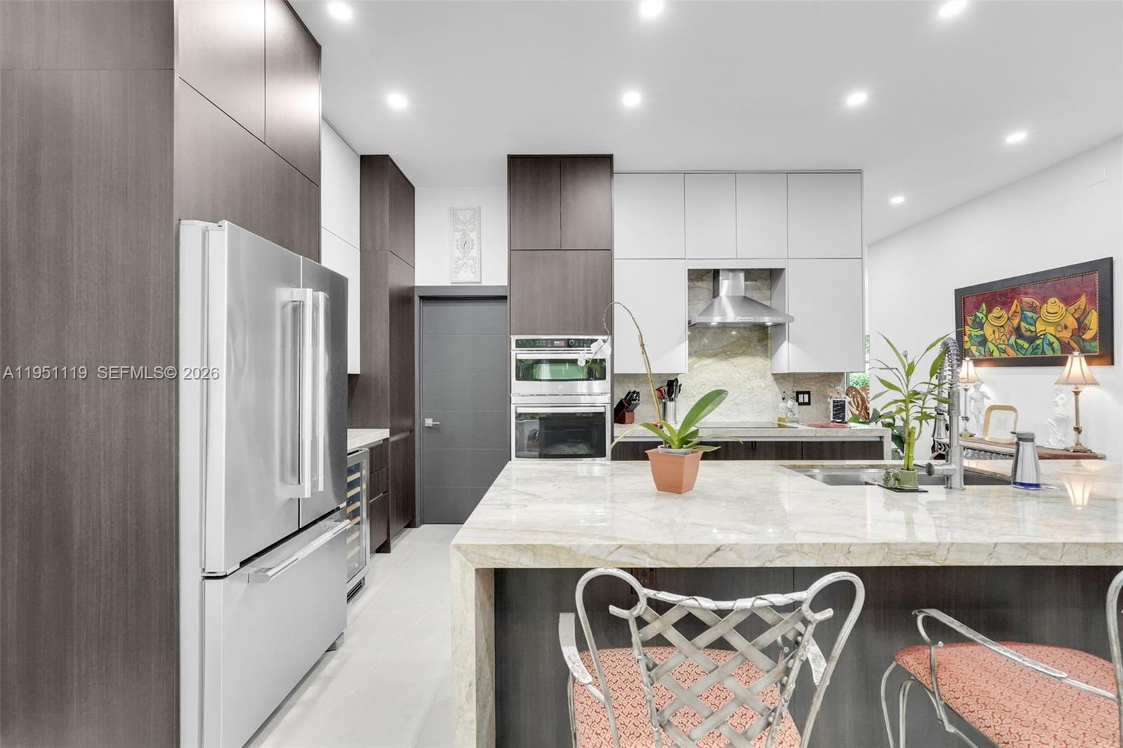 Step into pristine perfection in this fully rebuilt, permit-approved home—where luxury, technology, and peace of mind meet. All permits finalized, inspections passed, and every major system upgraded from roof to foundation for true worry-free living. This smart home features Vivint security with 24/7 monitoring, cameras, smart locks, lighting control, Nest thermostat, UV HVAC purification, full electrical rewire, new panel, new HVAC with ductwork, foam insulation, impact windows/doors, reinforced garage door, gutters, and a 2021 concrete roof. Soaring 10’ ceilings, oversized windows, custom 8’ doors, LED recessed lighting, modern fixtures, and designer finishes throughout. The chef’s kitchen is a showstopper with custom cabinetry to ceiling, quartzite waterfall island, quartzite counters & full-height backsplash, ZLINE induction cooktop, JennAir fridge, GE Profile oven/microwave, Whirlpool wine cooler, roof-vented hood, and all appliances under 2 years old. Spa-style primary suite with marble shower, rain & handheld system, dual quartz vanities, touchless mirrors, pocket doors, and custom closets. Bedrooms feature premium carpeting with noise-reduction padding. Porcelain tile throughout main areas. Backyard oasis offers a resort-style smart pool with LED lighting, stone decking, deck jets, and smartphone controls. Pre-wired fiber & Ethernet. This is not just move-in ready—it’s a fully modernized, luxury smart residence designed for today’s lifestyle.