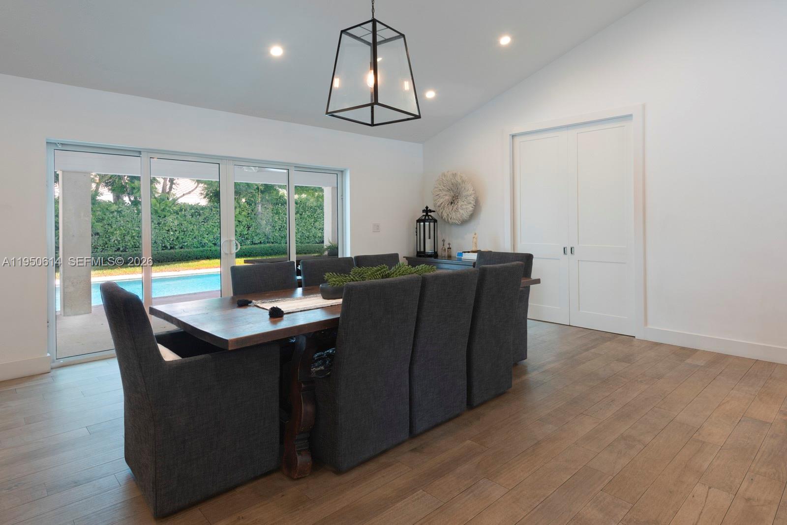 Beautifully remodeled 1 story pool home in sought-after Pine Bay Estates, Palmetto Bay. This spacious 5-bed, 5.5-bath triple-split-plan home offers comfort and functionality. The garage has been thoughtfully converted into a versatile extra room, with additional storage and a dedicated laundry area, bringing the total interior space to approximately 3,938 sq ft (per owner). Features include tile floors, impact windows/doors, Thermador appliances, KitchenAid fridge, Carrara marble counters, and a whole-house dichlorination system. The expansive primary suite offers privacy and luxury. Set on a lush ½-acre lot with mature landscaping, a serene pool, covered patio, and half basketball court, ideal for entertaining. Rare opportunity in one of Palmetto Bay’s premier neighborhoods.