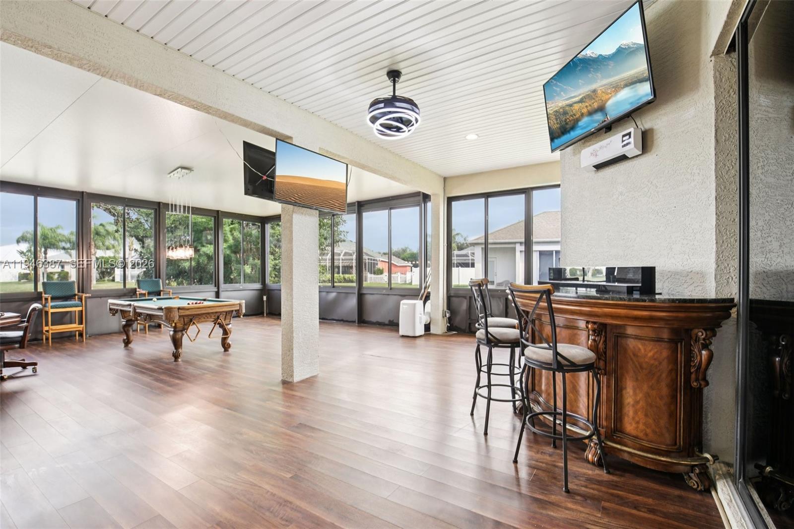 Welcome to this beautifully maintained home located in the gated Chelsea Oaks community, where comfort, space, and thoughtful upgrades come together. This 3-bedroom, 2-bath residence offers a spacious open floor plan designed for both everyday living and entertaining. The kitchen features ample counter space, generous cabinetry, and a convenient serving bar that flows seamlessly into the dining and living areas. One of the standout features of the home is the large Florida room, offering approximately 720 square feet of additional living space with disappearing sliding glass doors — perfect for entertaining, a game room, or relaxing while enjoying the peaceful surroundings. Recent Upgrades Include: • Custom media wall • Upgraded hall bathroom vanity and toilets • Brand-new dishwasher, microwave, and range • $15,000 invested in new flooring throughout the home The home also offers serene pond views, creating a calm and relaxing backdrop for everyday living. Located in Chelsea Oaks, a gated community with low HOA fees and no CDD, residents enjoy access to community amenities including a pool, playground, and basketball court. The property is conveniently positioned near the Fort Hamer boat ramp and bridge, providing easy access to dining, shopping, and major routes. A well-rounded home with meaningful upgrades, generous space, and an excellent location — now officially available