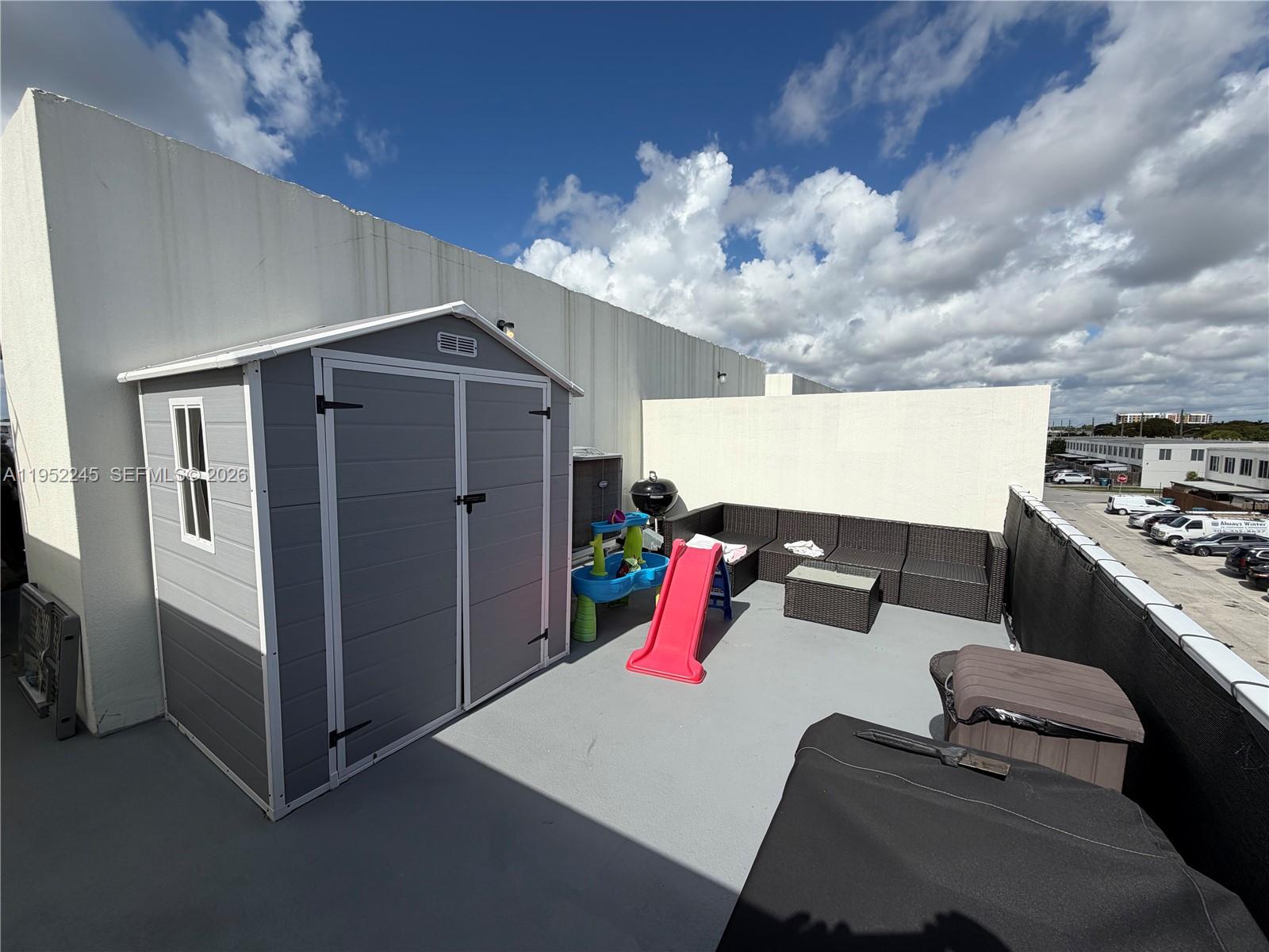 Welcome to this stunning 4-bedroom, 3.5-bathroom townhouse built in 2021, offering contemporary design, premium upgrades, and exceptional indoor-outdoor living. This beautifully maintained residence has been newly painted and features thoughtful enhancements throughout for both comfort and peace of mind. The highlight of the home is the expansive rooftop patio, complete with a full private gym and a privacy wall, creating a unique personal retreat perfect for workouts, entertaining, or relaxing under the sky. The rooftop flooring was sealed at the end of 2025, adding durability and a clean, modern finish. Inside, the open-concept layout provides spacious living and dining areas, a sleek modern kitchen, and generously sized bedrooms, including a private primary suite with a spa-inspired bath. Additional features include stainless steel appliances, fairly new HVAC system that was just maintained, brand-new front and back door locks and two dedicated parking spaces for added convenience. This turnkey townhouse combines modern living with a rare rooftop fitness and entertaining space—perfect for today’s lifestyle. FULL GYM ON ROOFTOP INCLUDED IN SALE!!! Schedule your private showing today and experience this exceptional home firsthand.