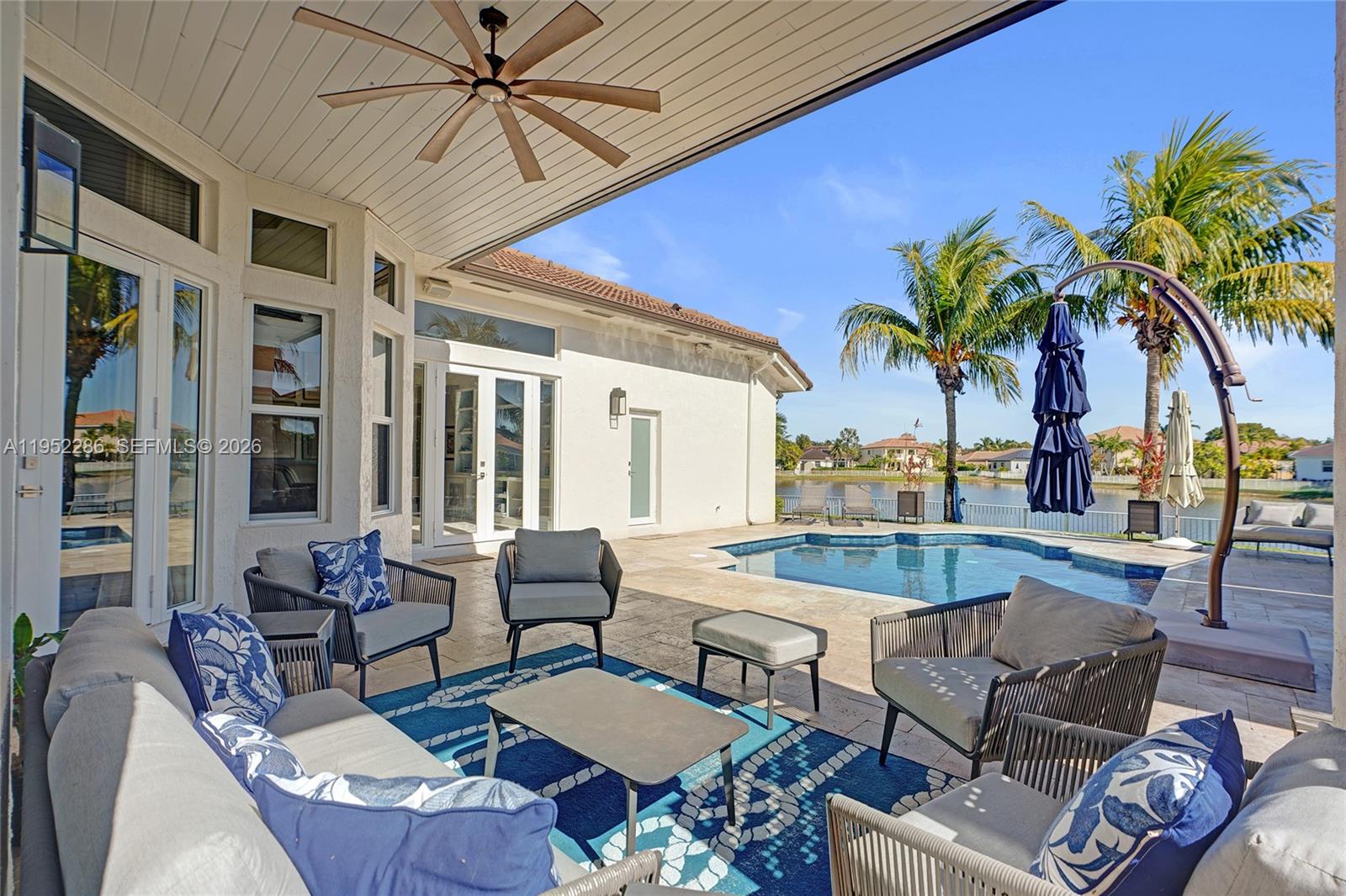 WOW! If you’re looking for a home that is truly quality move-in ready, look no further. This luxurious one-story residence 5 Bedrooms | 3 Bathrooms | ONE-STORY | Fully remodeled. 2-car garage plus ample space for up to 5 additional vehicles | Gourmet kitchen with porcelain countertops and high-end Italian cabinetry | Designer bathrooms with upscale finishes | Custom solid wood doors with hidden hinges |Textured walls adding architectural depth | Impact windows | Custom electric blinds & blackout shades | 220V EV charger ready | Located in a gated community, on an exclusive cul-de-sac, with large water frontage and a premium 12,500-sqft lot | Retreat-style community with only 182 single-family homes, free of gate lines, offering privacy, prestige, and tranquility | Resort-style outdoor living: Recently completed heated pool | Outdoor kitchen with built-in cooler | Special garden lighting for evening ambiance | Gorgeous landscaping with automatic sprinklers | Fully fenced yard | Private automatic call box | Expansive patio designed for the ultimate Florida lifestyle | One story. Fully remodeled. Waterfront luxury in Miramar FL