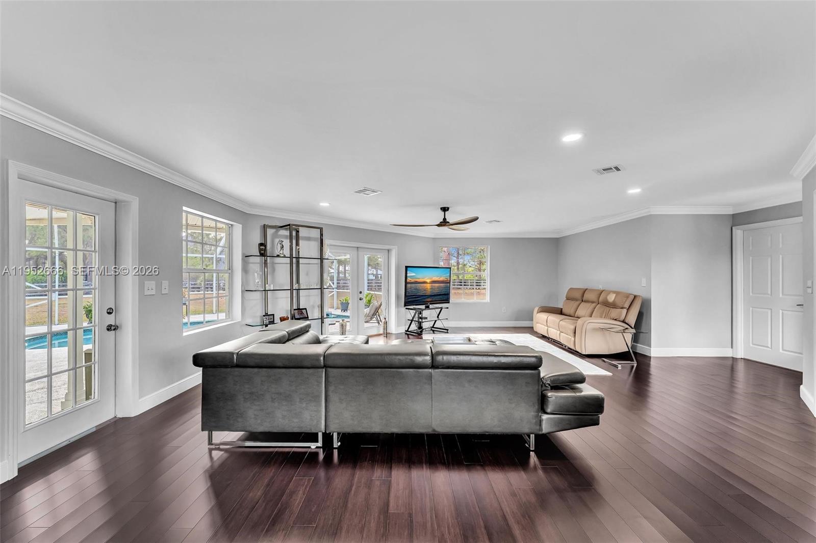 Set within the gated equestrian community of Stuart West, this FULLY FURNISHED Palm City estate sits on a private 2.12 acre corner lot offering space, serenity, and flexibility to grow. The home has been extensively updated with a metal roof in 2018, newer HVAC system in 2023, upgraded water system in 2023, resurfaced pool with new pump in 2022, and hot water heater in 2024, delivering long term value and peace of mind. Inside, the primary suite is a true sanctuary featuring a spa inspired bath and generous walk in closet. Enjoy wide open surroundings, room for outdoor living or equestrian use, and the quiet lifestyle Stuart West is known for, with optional access to The Cape Club and convenient proximity to everyday amenities. SCHEDULE TODAY!