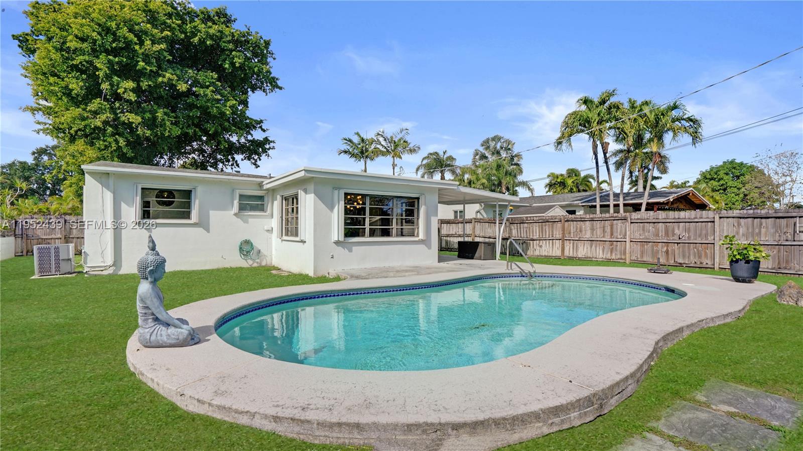 Timeless pool home in the heart of Hollywood, just a quick bike ride to Hollywood Beach, Hollywood Blvd, the YMCA, Farmers Market, Rotary Park, and TY Park. This well-maintained 3-bedroom, 1-bath residence features major upgrades, including a new roof, new electrical system with surge protection, new AC system, and a new kitchen with white quartz countertops and backsplash. All systems are under warranty. Outside, enjoy a private pool, covered patio, an extra-long driveway with ample parking, and classic Hollywood curb appeal. The spacious Florida room overlooks the pool and the third bedroom has a separate private entrance. This charming home maintains mid-century Hollywood character while thoughtfully brought forward. Perfect as a primary residence, vacation home, Airbnb, or rental investment.