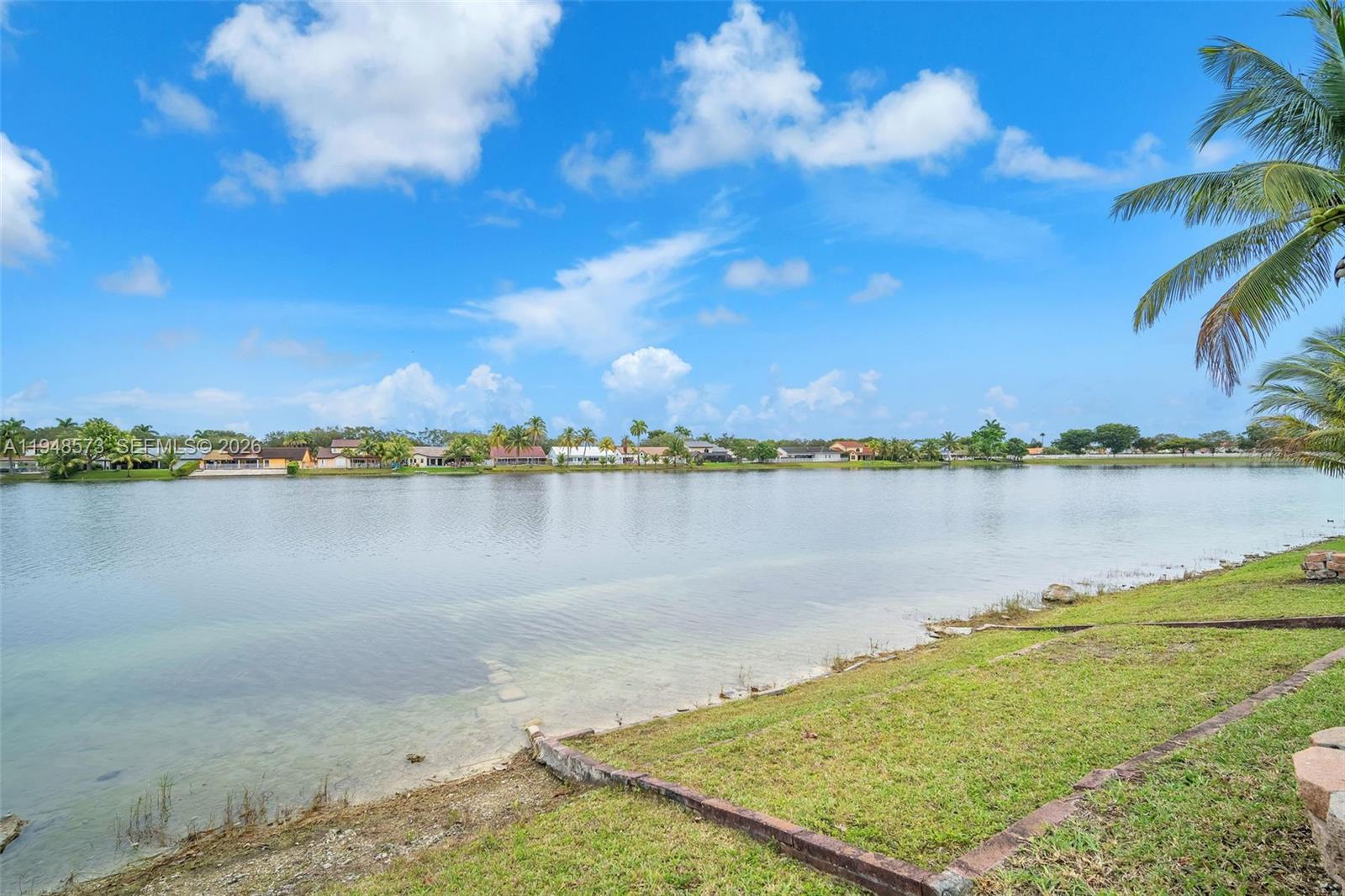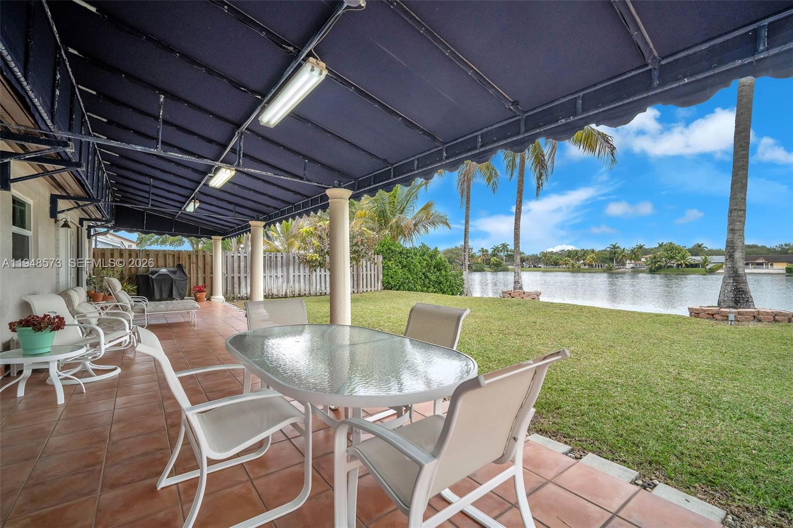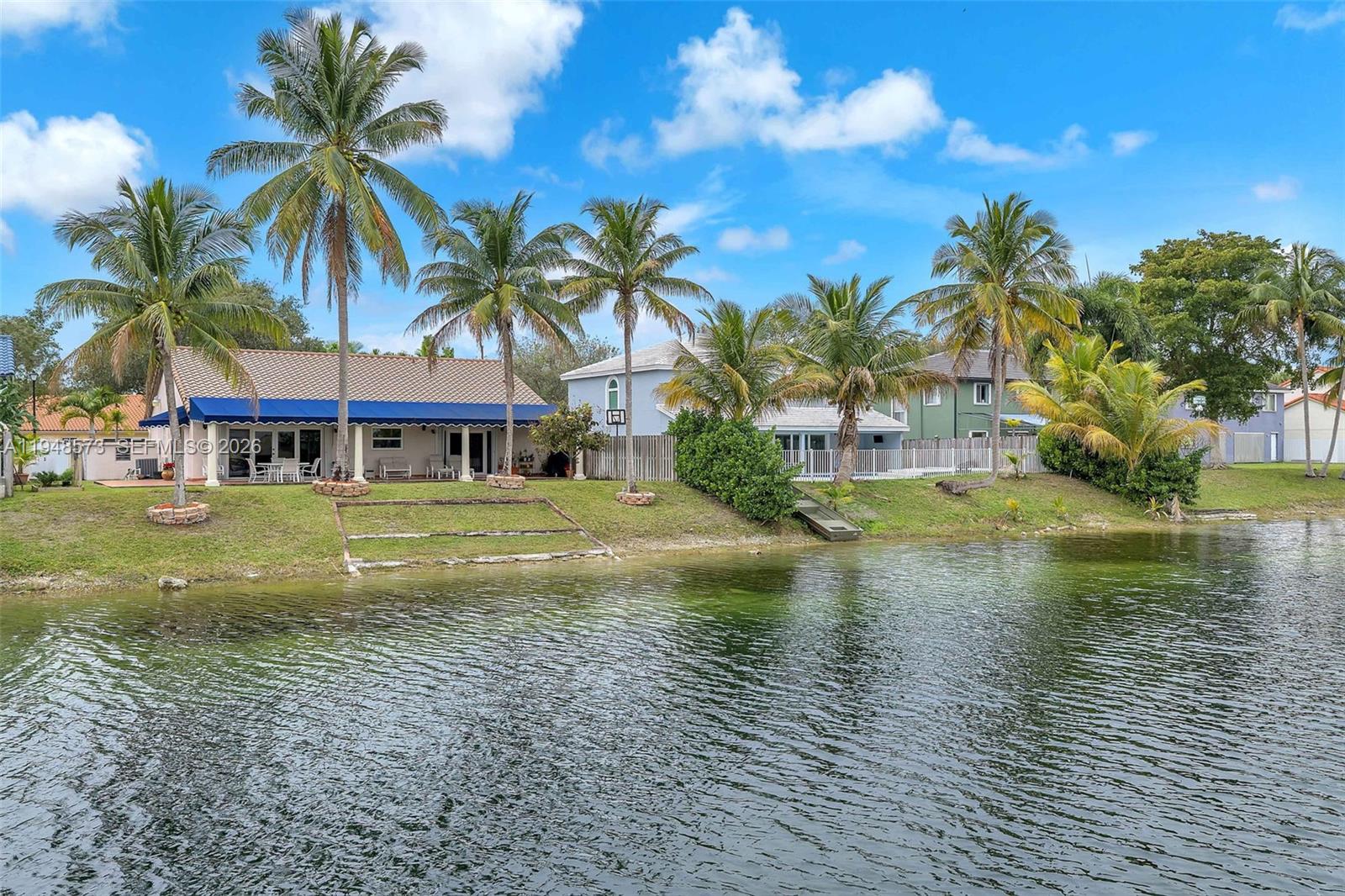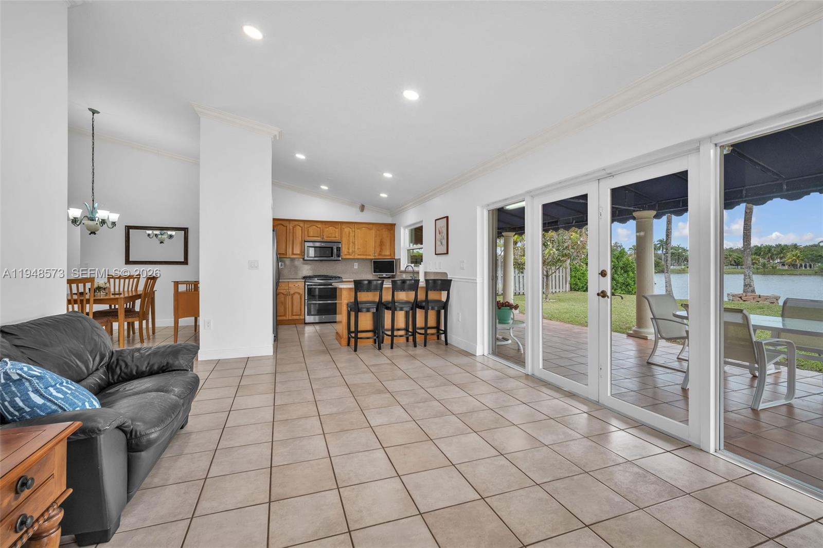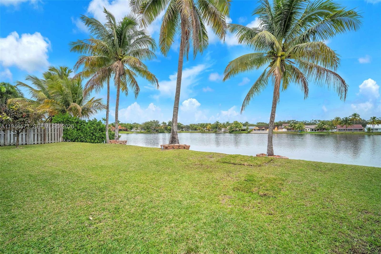 Welcome home! This charming 3-bedroom, 2-bathroom residence is located in the Lakes on the Greens community. It features a circular driveway, a two-car garage, and an elegant double-door entry. Inside, enjoy an open, airy layout with volume ceilings and natural light throughout. The updated kitchen cabinetry and a 5-burner gas stove are ideal for everyday living and entertaining. Tile flooring throughout and a large covered terrace overlook a wide lake view. Enjoy as your own private retreat or enjoy with a large family gathering. Close to I-75, the Turnpike, and 826 for easy commuting. Call today to preview this special home.