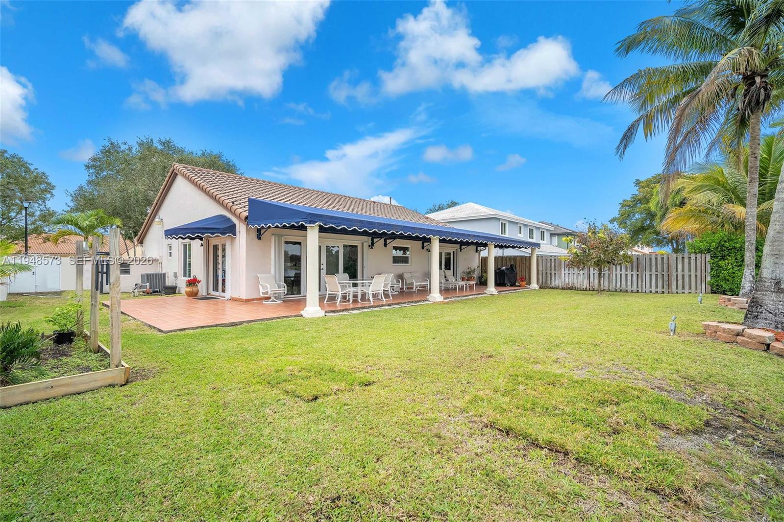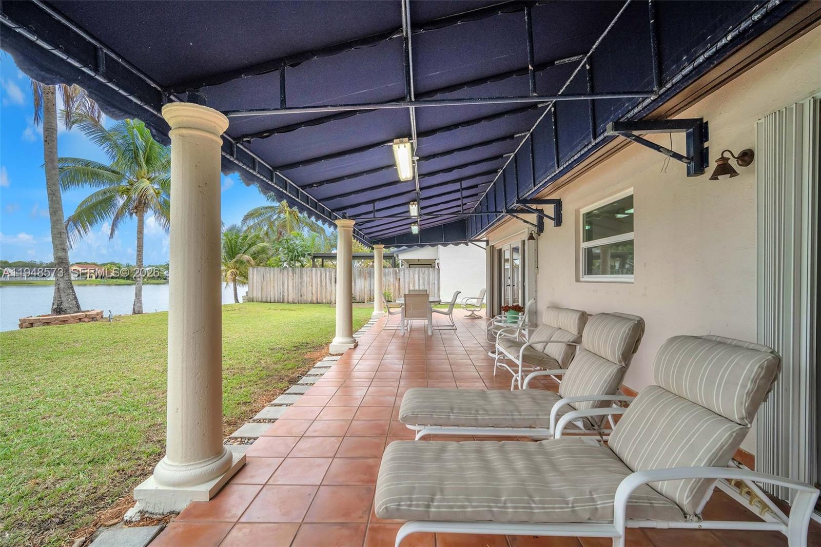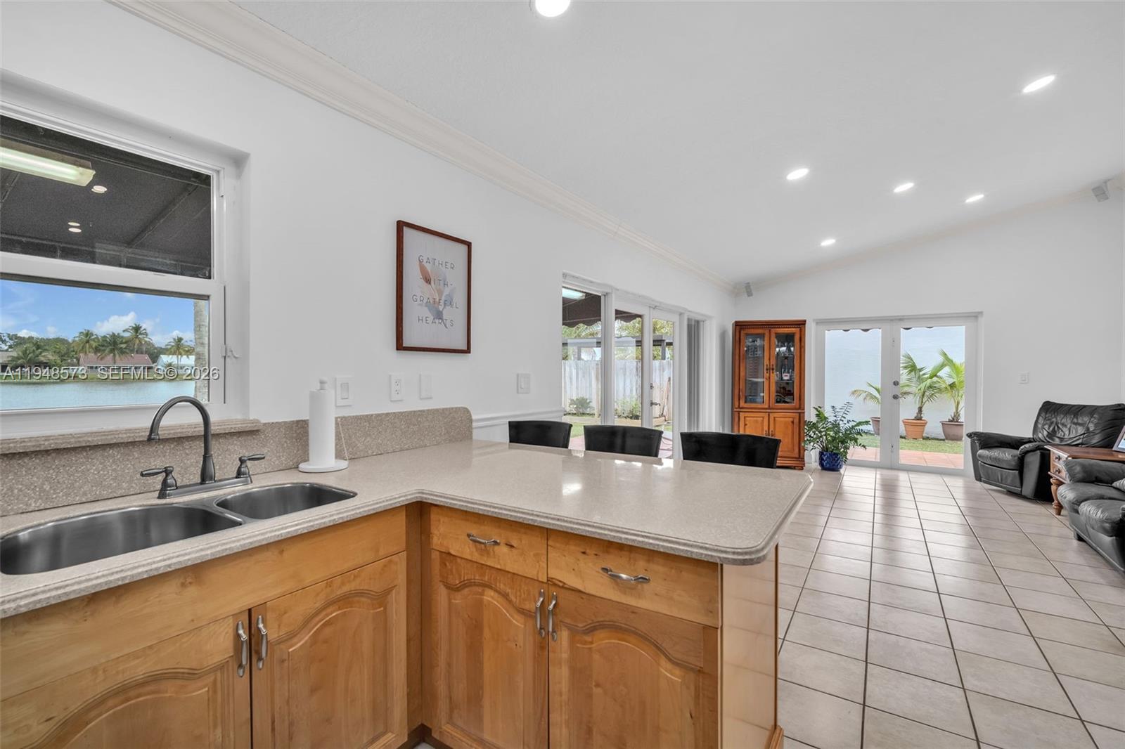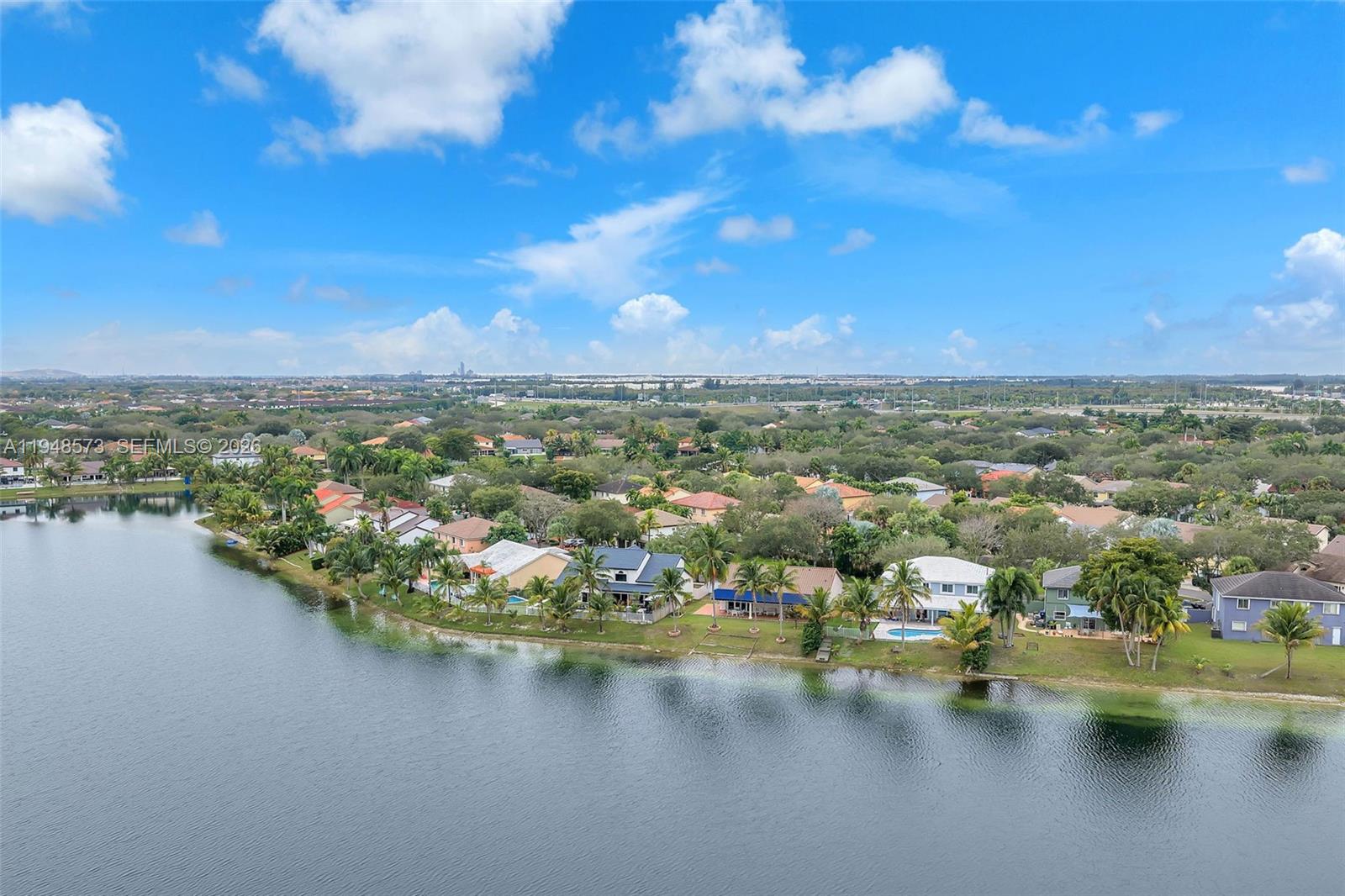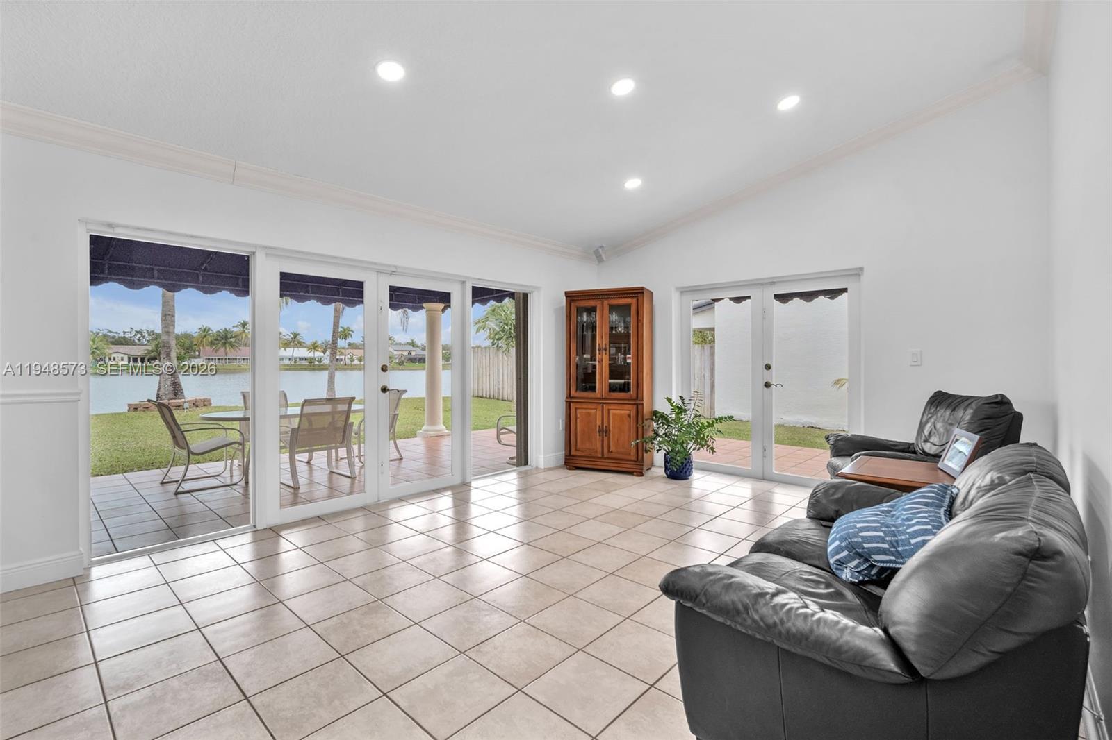 Welcome home! This charming 3-bedroom, 2-bathroom residence is located in the Lakes on the Greens community. It features a circular driveway, a two-car garage, and an elegant double-door entry. Inside, enjoy an open, airy layout with volume ceilings and natural light throughout. The updated kitchen cabinetry and a 5-burner gas stove are ideal for everyday living and entertaining. Tile flooring throughout and a large covered terrace overlook a wide lake view. Enjoy as your own private retreat or enjoy with a large family gathering. Close to I-75, the Turnpike, and 826 for easy commuting. Call today to preview this special home.