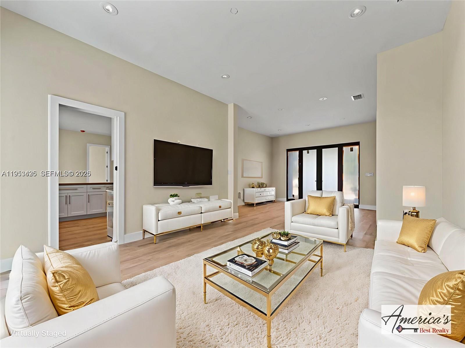 Elegant 4BD/4.5BA modern home with 12’ ceilings and waterproof vinyl flooring throughout. Each bedroom features a state-of-the-art bathroom and custom solid wood closet doors. Built for quality with a 40-year metal roof, impact windows & doors, and foam attic insulation. Dual new A/C units (5-ton & 3-ton, 10-yr warranty) and propane gas tank (10-yr warranty). Exterior highlights include an oversized 2-car garage, paver circular driveway, and covered patio pre-wired for fans, sink, and BBQ. Oversized septic, well water, and 8-camera security system. Situated on a 16,400 SF lot with two entrances and plenty of room for a pool, RV, or boat.
